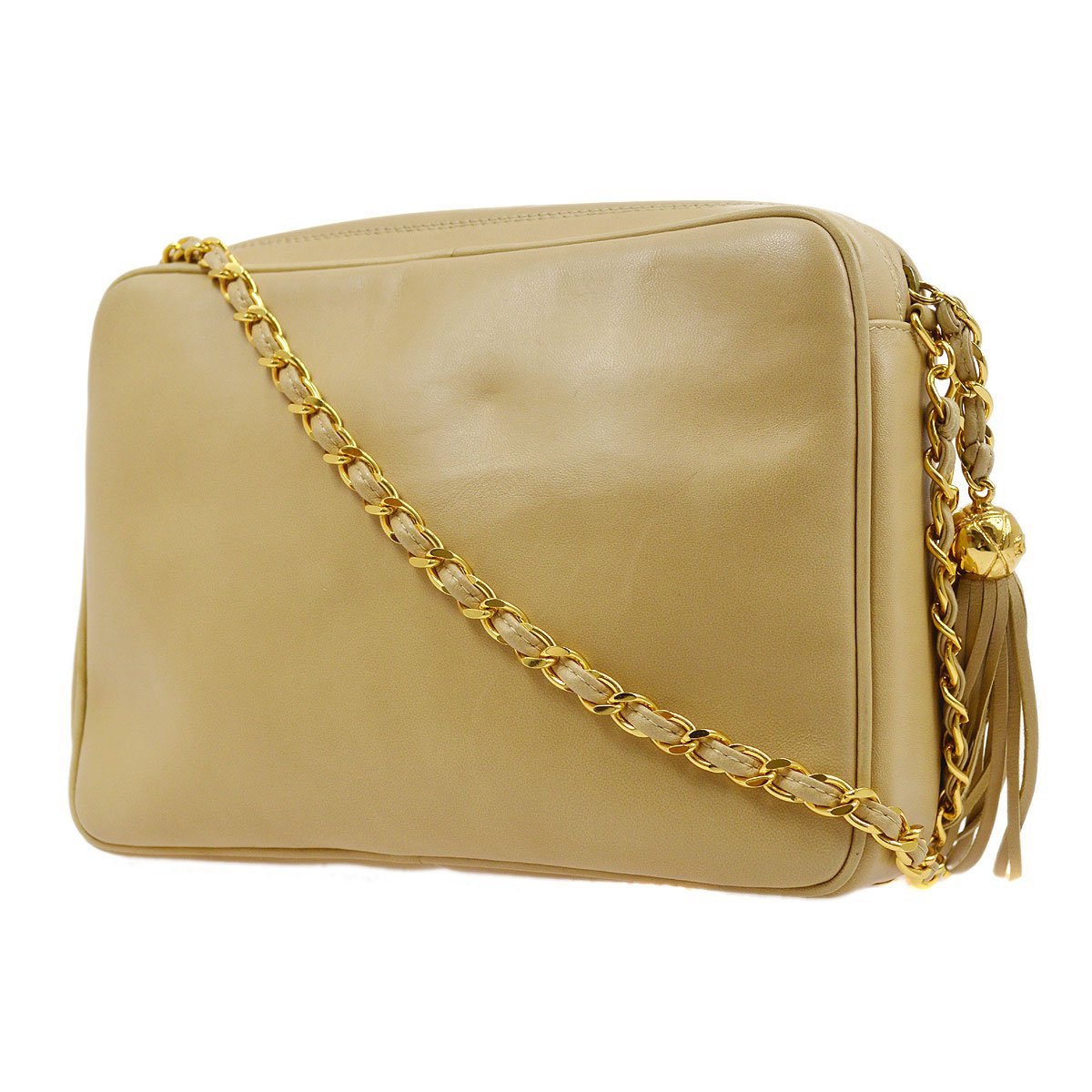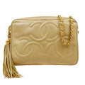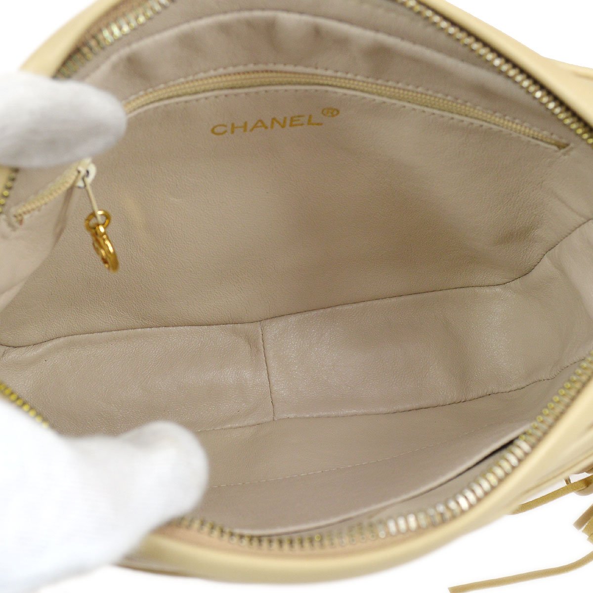 CHANEL Triple Fringe Single Chain Shoulder Bag Beige