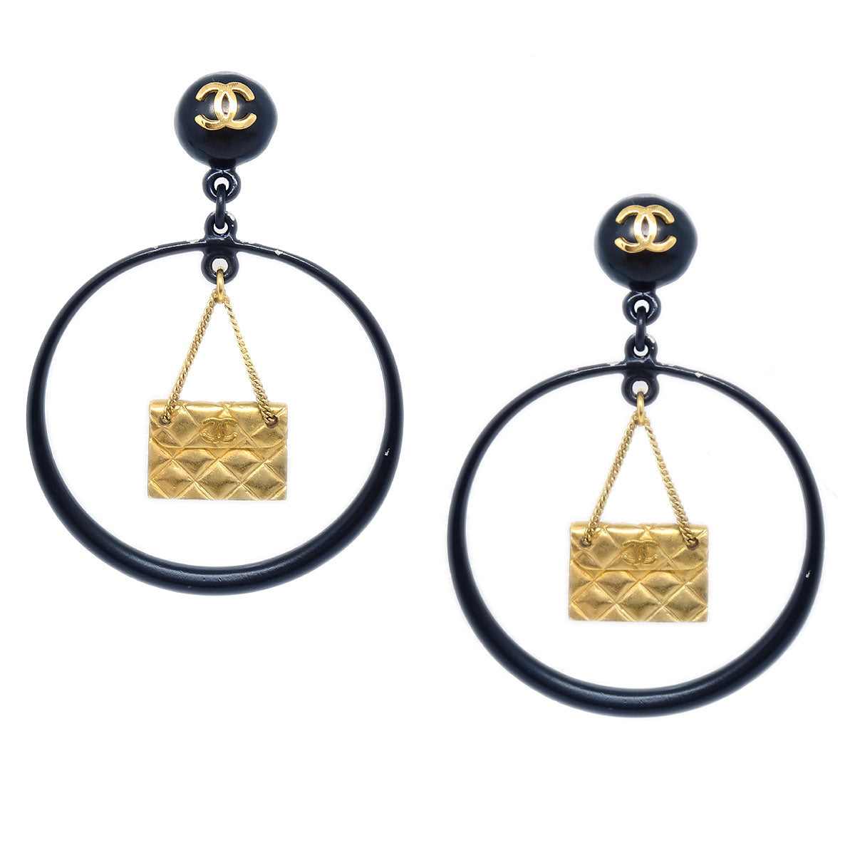 CHANEL 1994 Bag Motif Hoop Earrings 64042