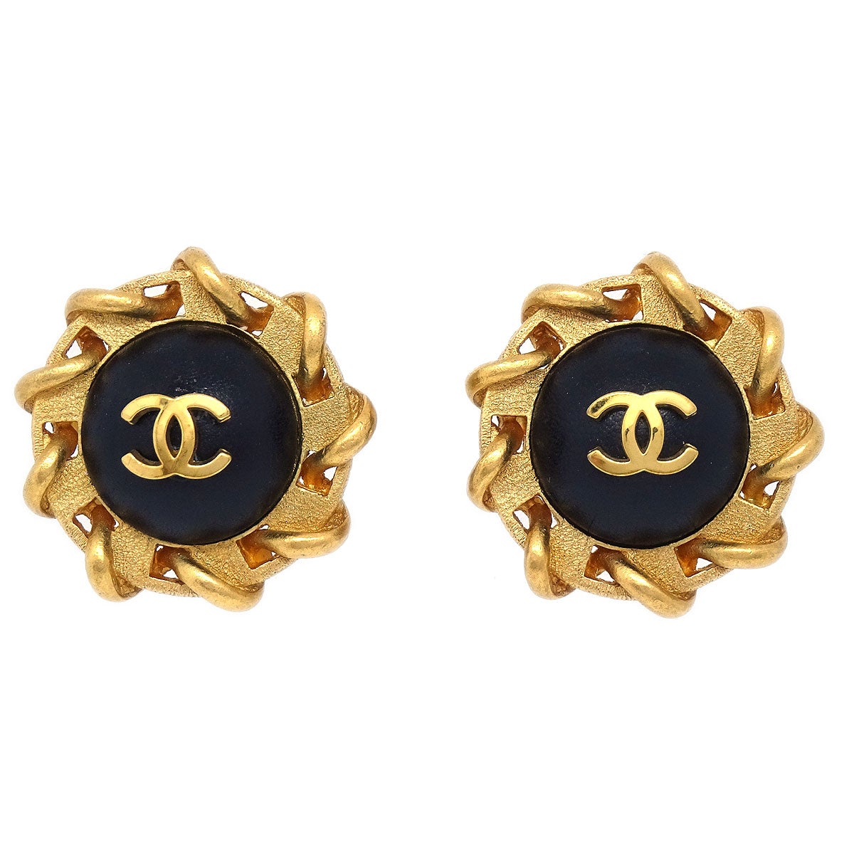 CHANEL 1994 Black & Gold CC Earrings 04330