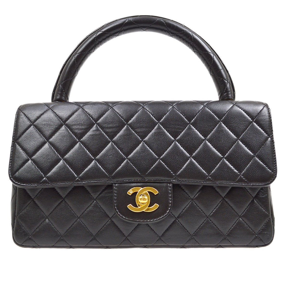 Chanel? 1994 Classic Flap Top Handle Bag Medium Black Lambskin 41952