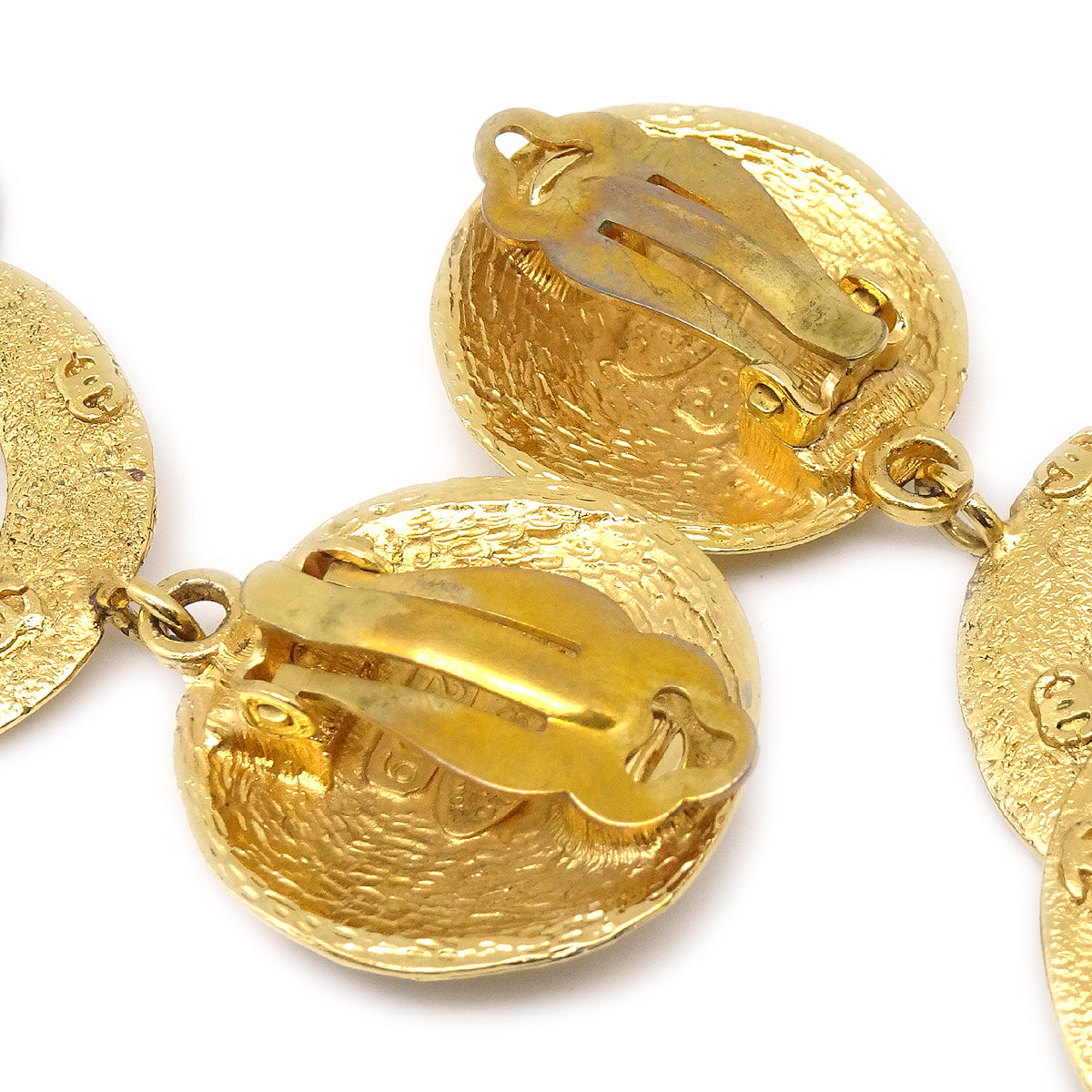 CHANEL 1994 Dangle Hoop Earrings Clip-On Gold 2909 88602