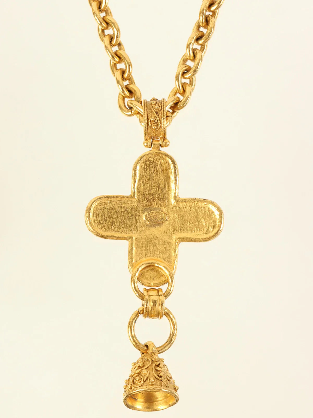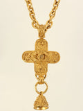 CHANEL 1994 Made Cross Bell Motif Dotted Cc Mark Long Necklace Gold