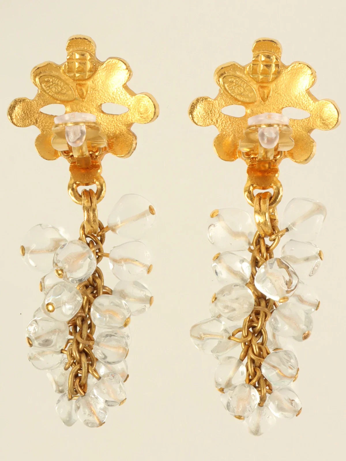CHANEL 1994 Made Design Cc Mark Swing Stone Earrings Gold/Clear