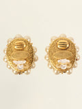 CHANEL 1994 Made Pearl Cc Mark Earrings Gold/Navy