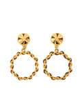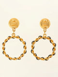 CHANEL 1994 Made Round Clover Hoop Swing Earrings Gold/Black