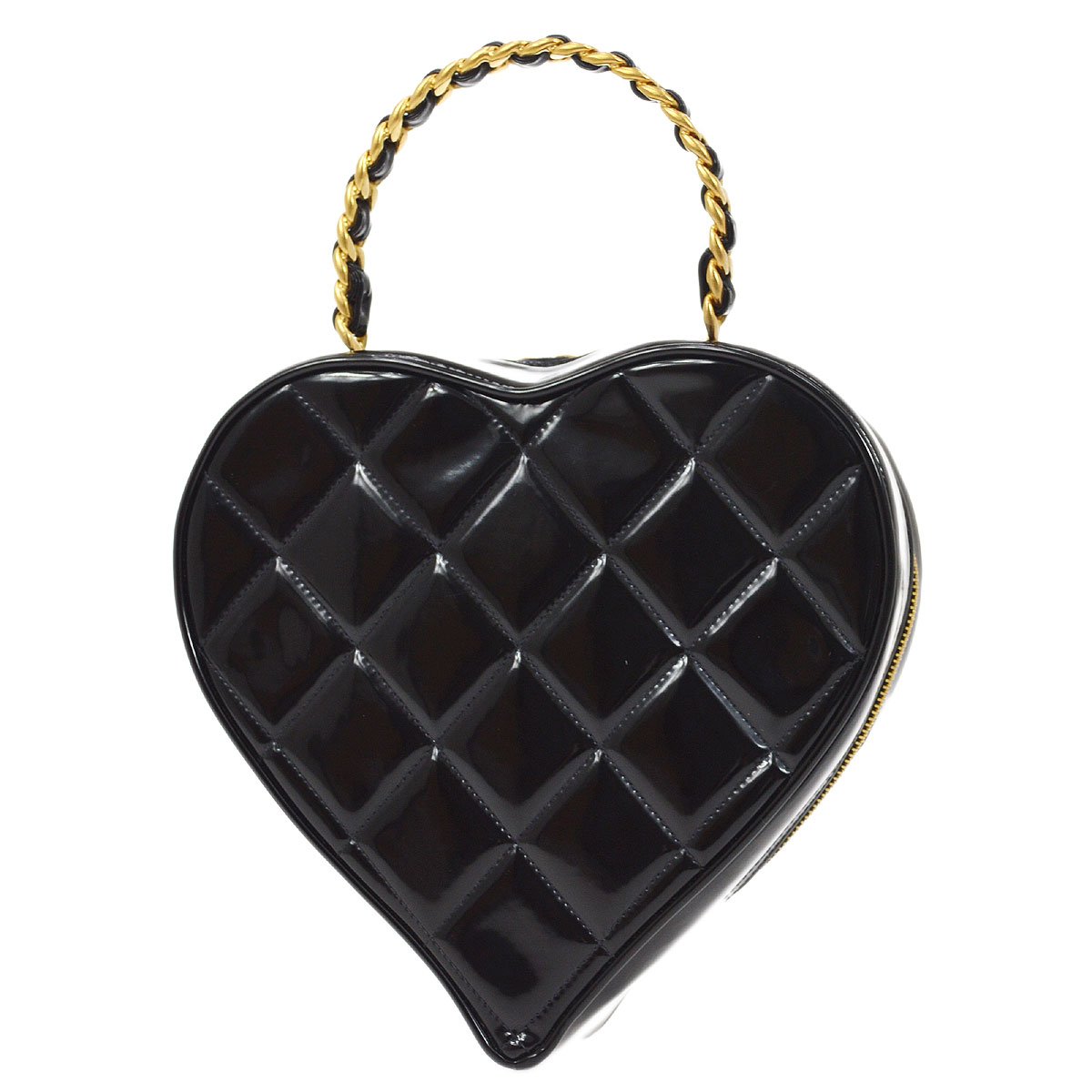 CHANEL Black Patent Leather Heart vanity bag 92930