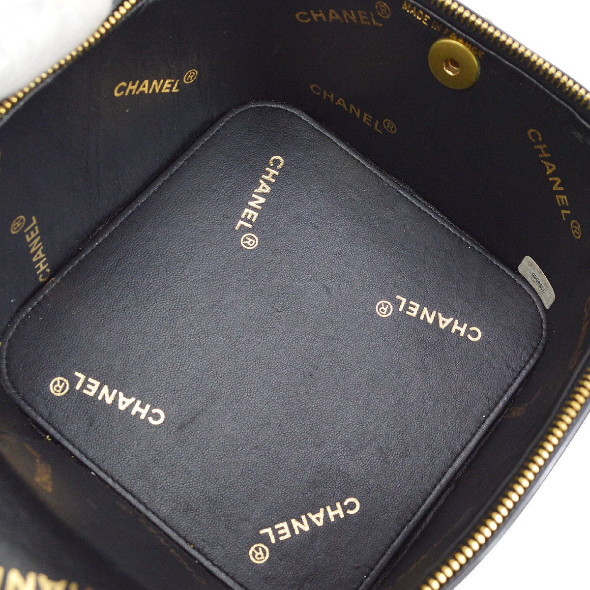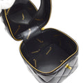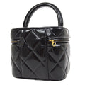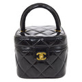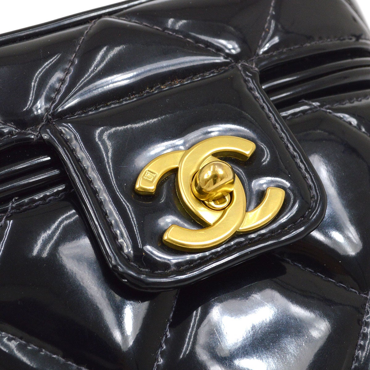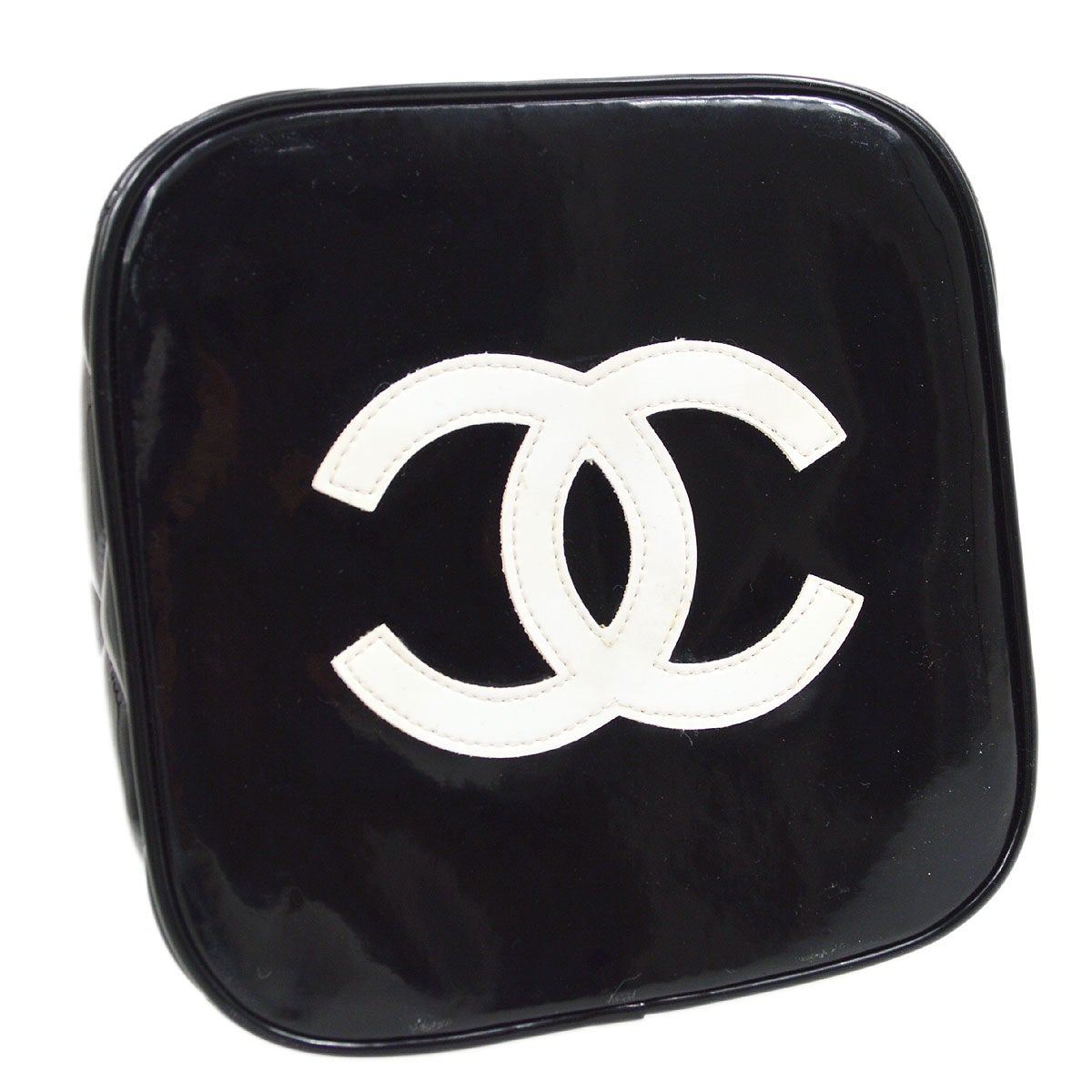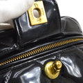 CHANEL Cosmetic Vanity Hand Bag Black Patent Leather??Heart Mirror