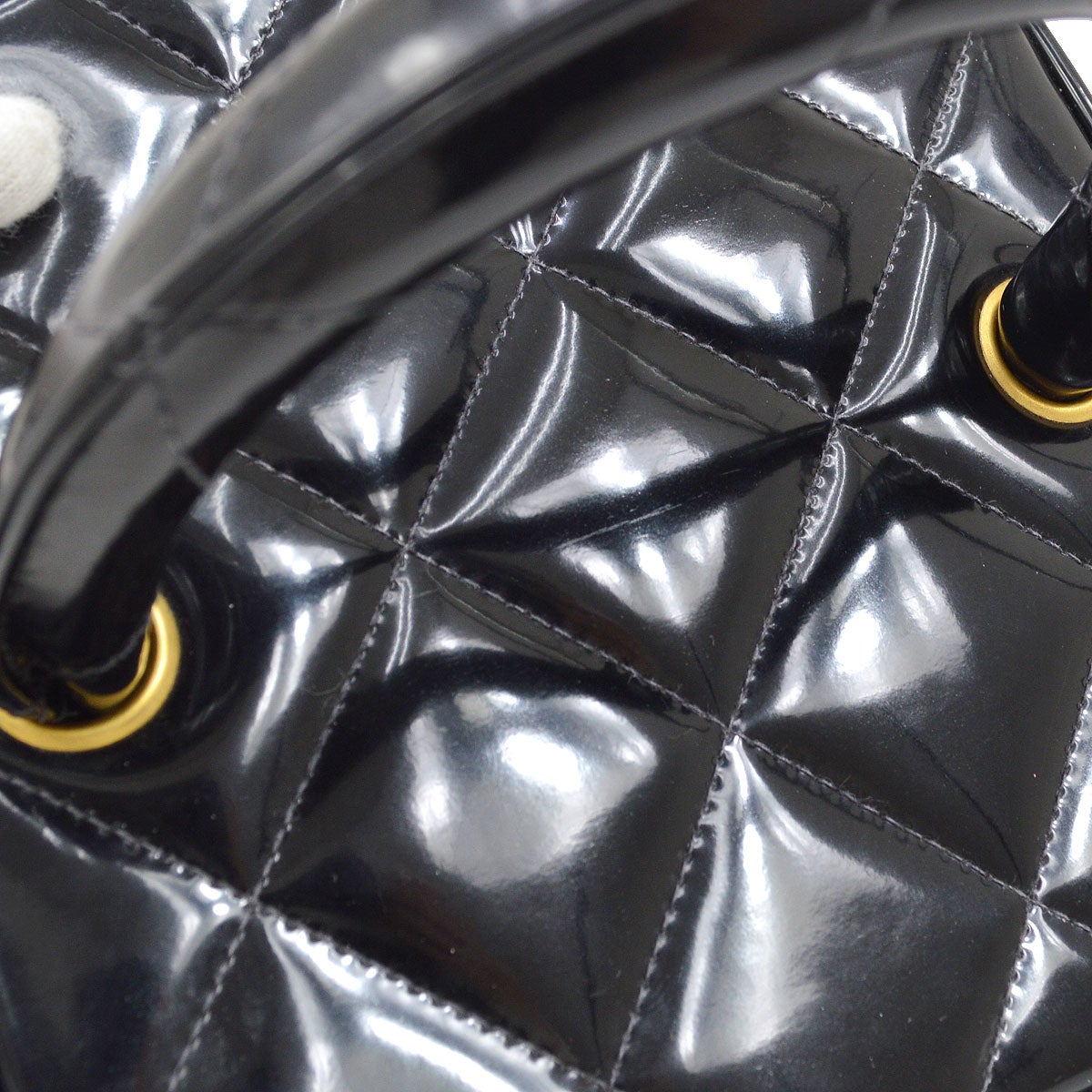 CHANEL 1995 Heart Mirror Vanity Handbag Black Patent Leather AK31767i