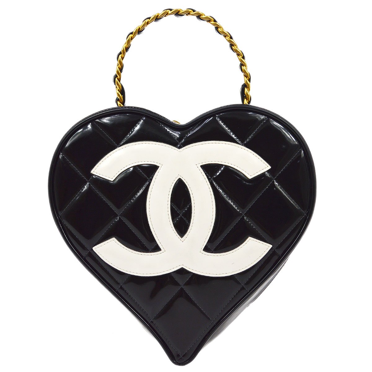 | CHANEL Jumbo CC Heart Cosmetic Vanity Hard Bag Black Patent Leather | |