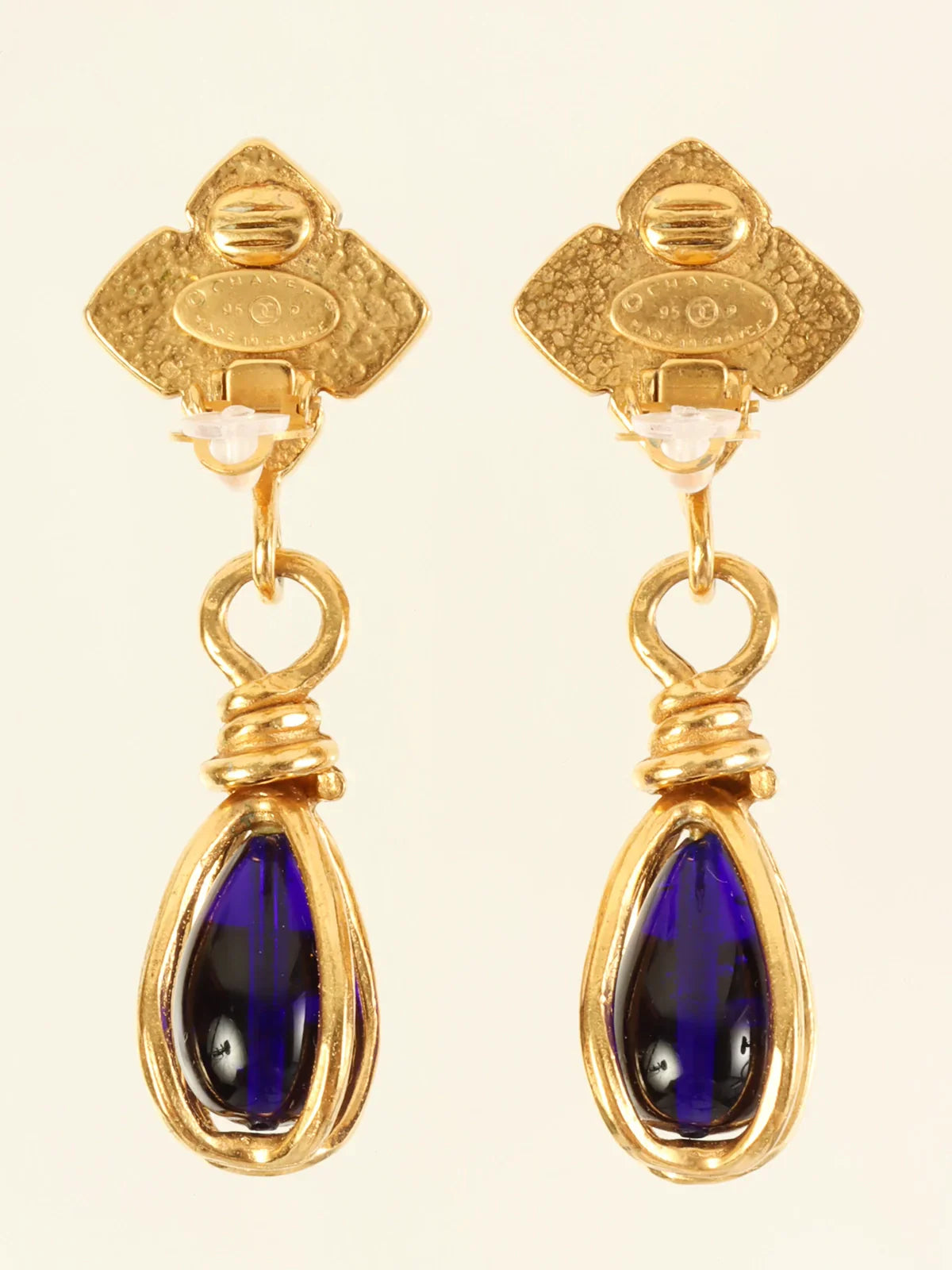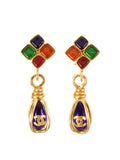 CHANEL 1995 Made Gripoix Clover Cc Mark Swing Earrings Gold/Multi