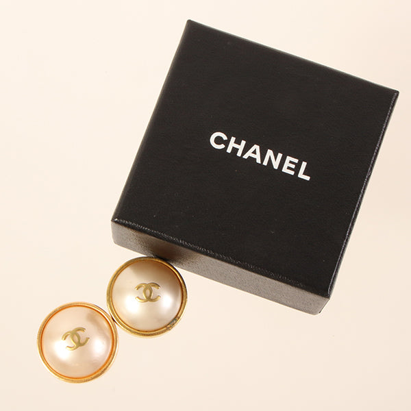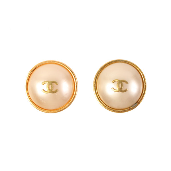 CHANEL 1995 Made Round Pearl Mini Cc Mark Earrings