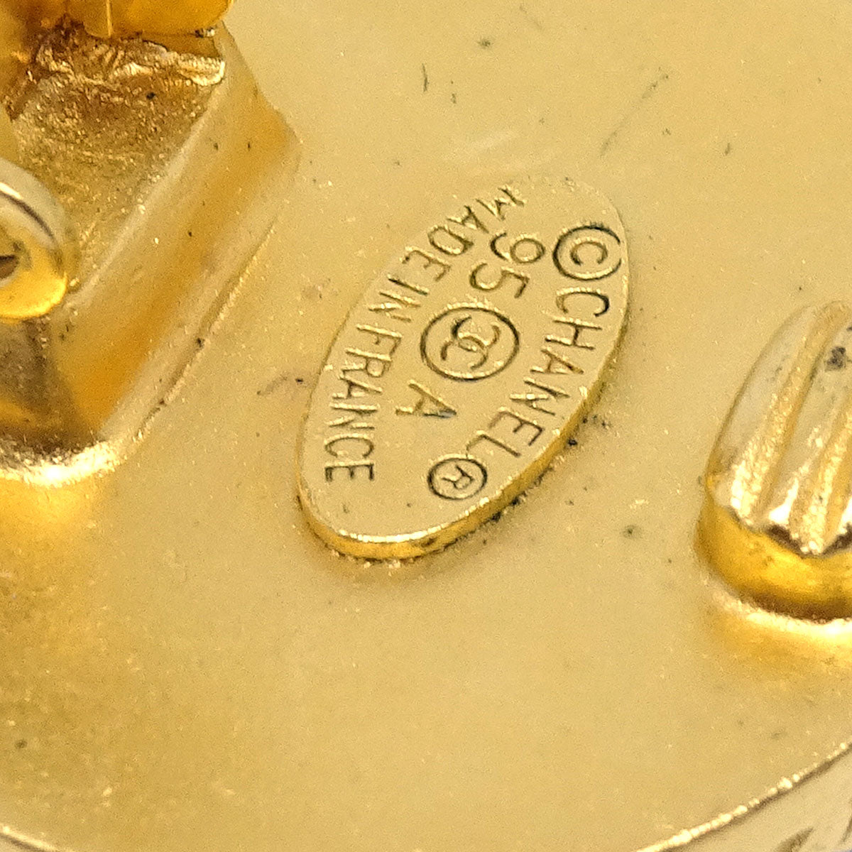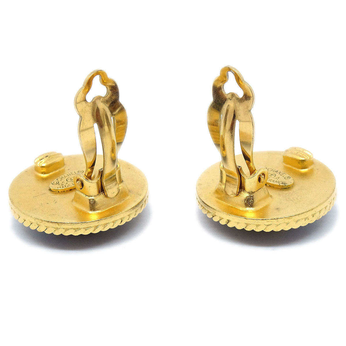 CHANEL Button Earrings Gold Brown Clip-On 95A