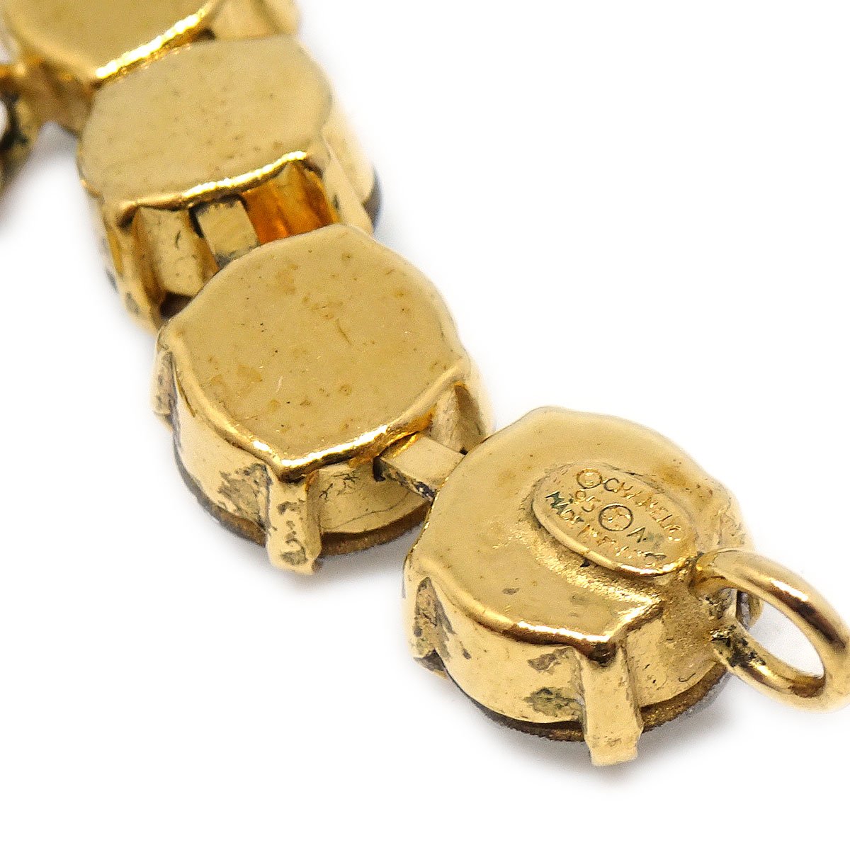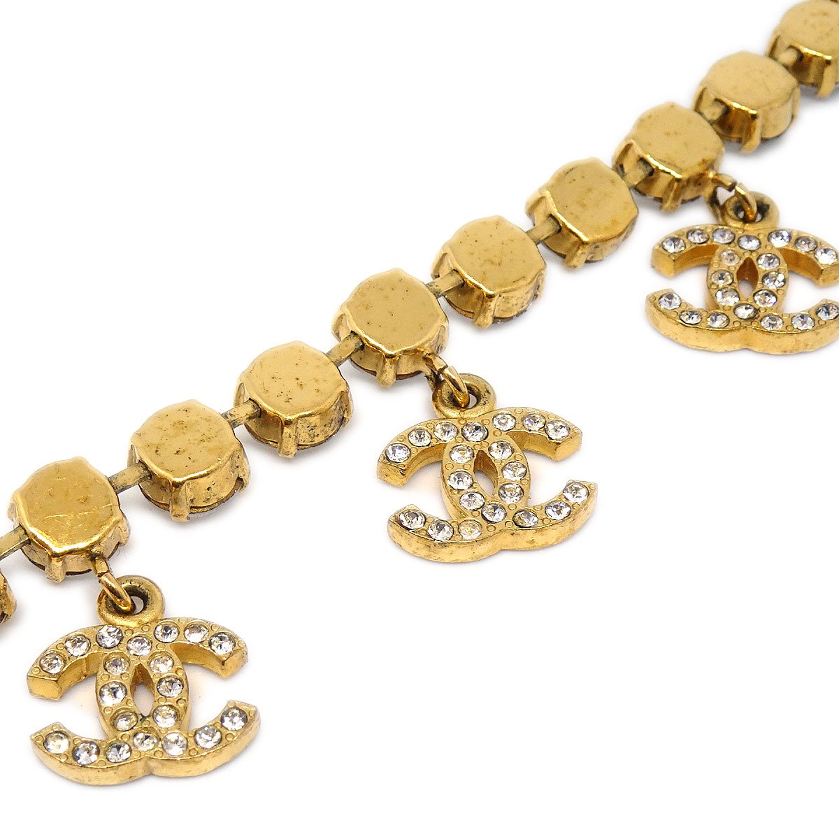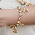 CHANEL Rhinestone Charm Gold Chain Bracelet 95A