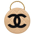 CHANEL Round Cosmetic Chain vanity Hand Bag Beige