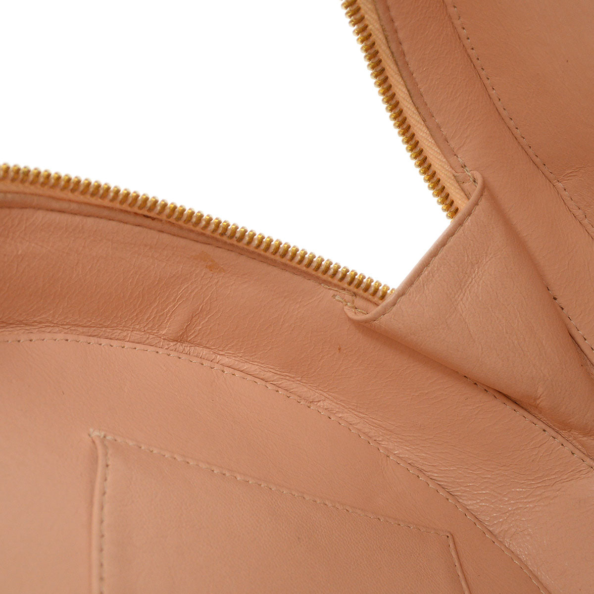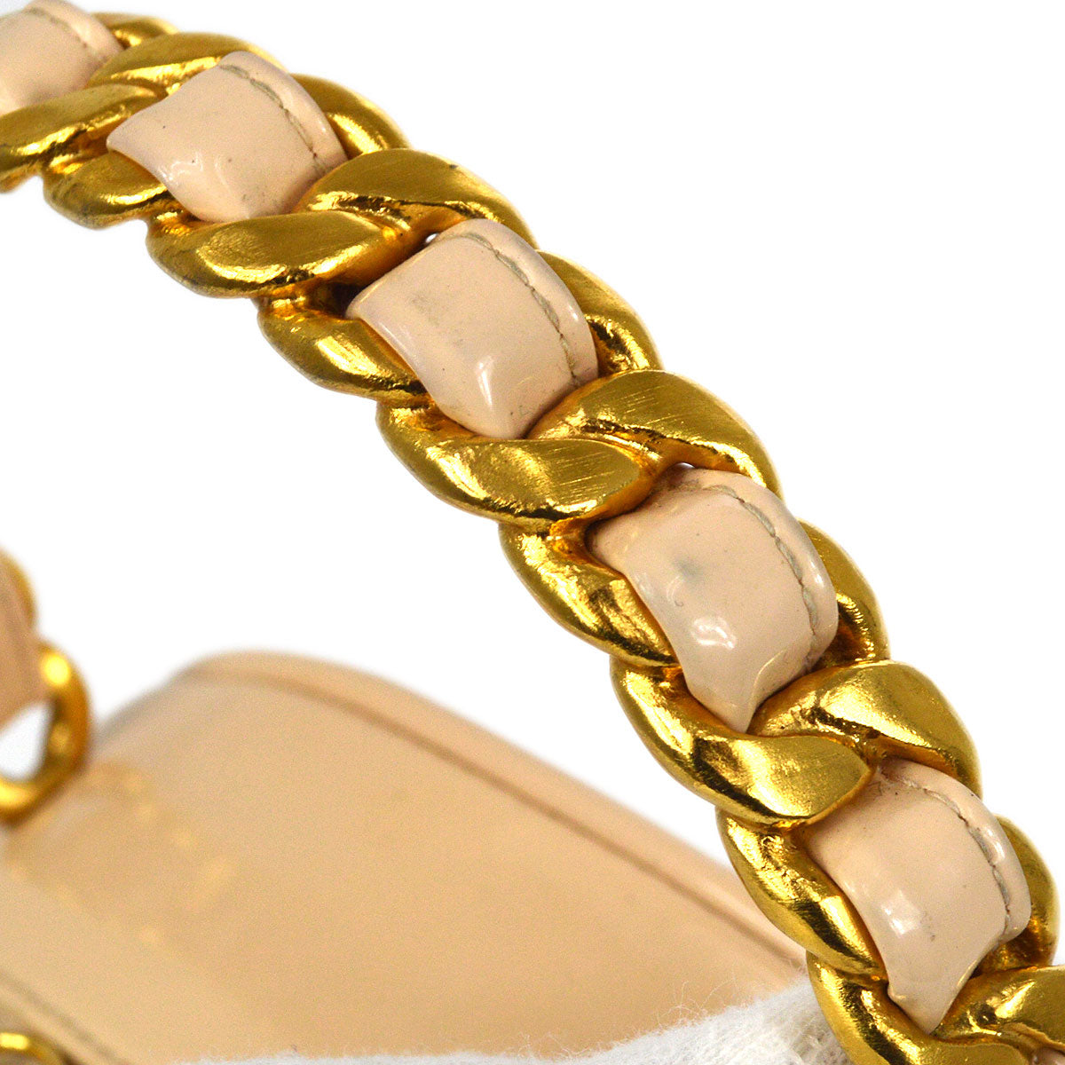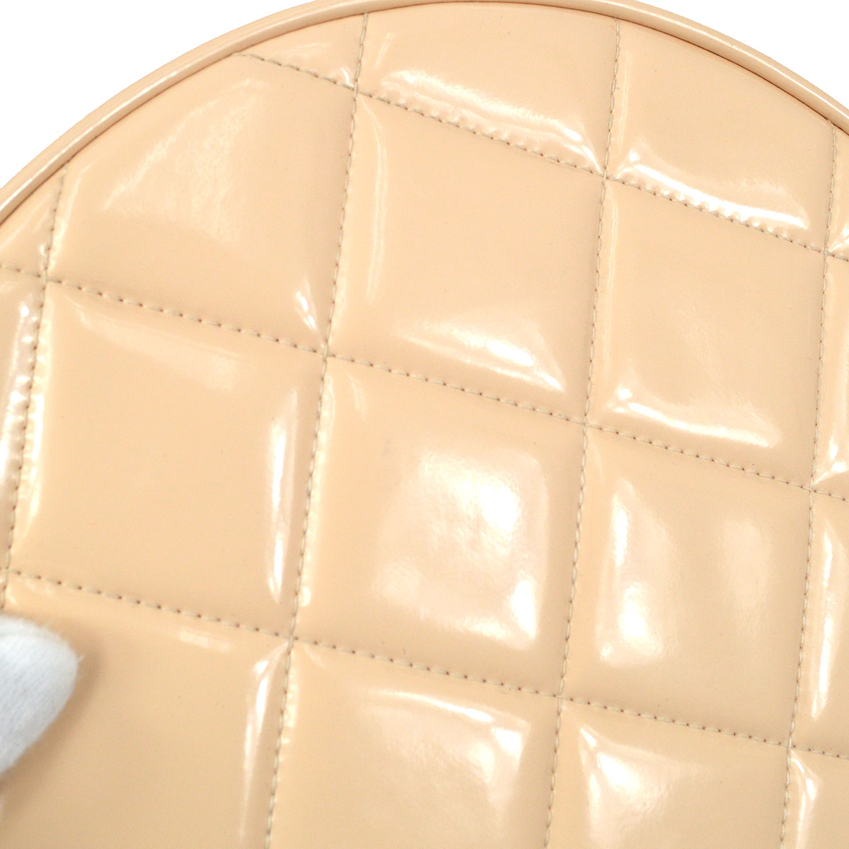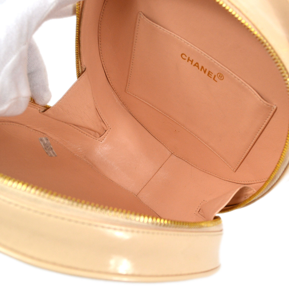 CHANEL * 1995 Round Cosmetic Chain vanity Hand Bag Beige 13686