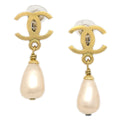 CHANEL 1995 Spring Dangle Pearl CC Earrings Clip-On 95P 39402