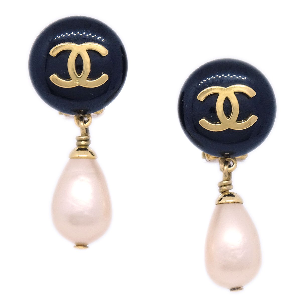 CHANEL 1995 Teardrop Pearl CC Dangle Earrings 61422