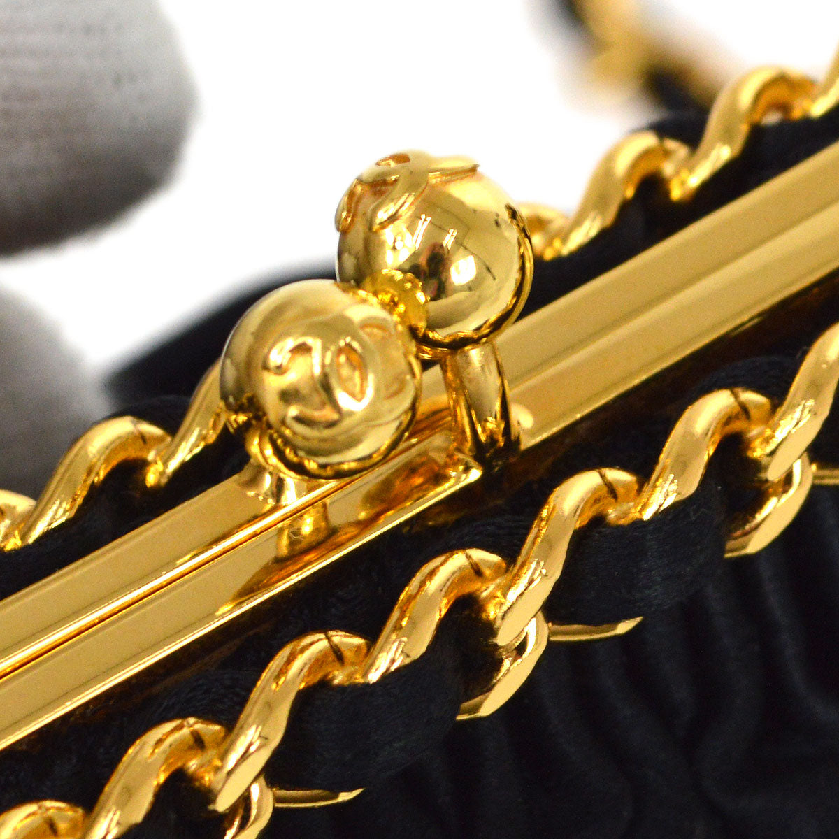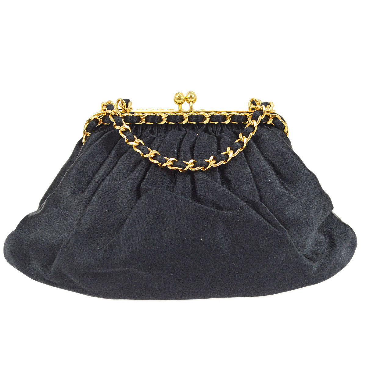 CHANEL 1996-1997 Black Satin Kisslock Shoulder Bag 53455