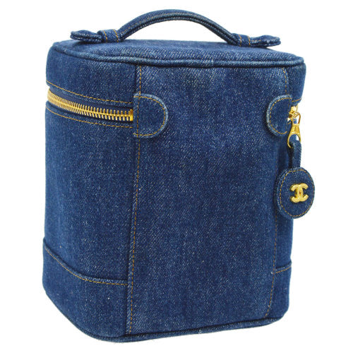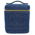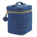 CHANEL 1996-1997 CC Logos Cosmetic Vanity Hand Bag Blue Denim ao07497