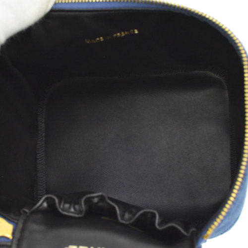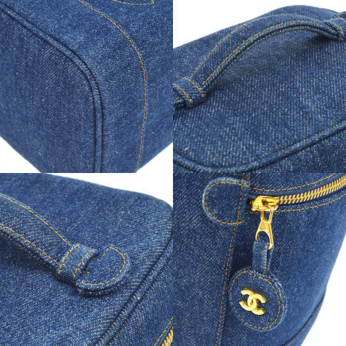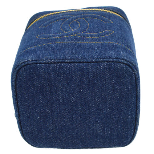 CHANEL CC Logos Cosmetic Vanity Hand Bag Blue Denim