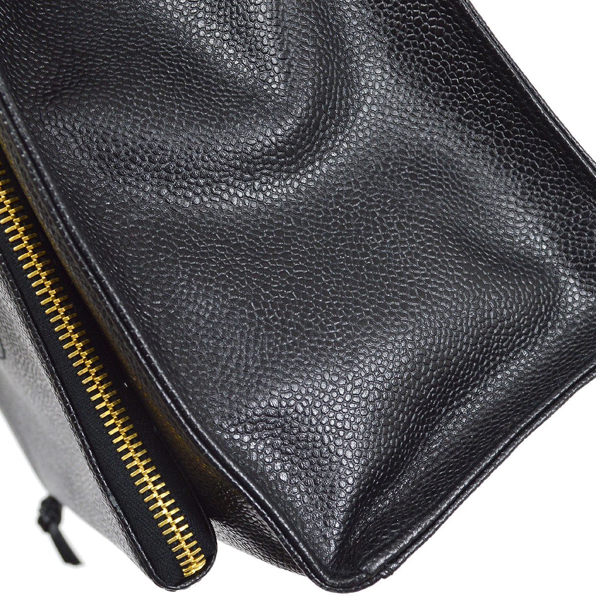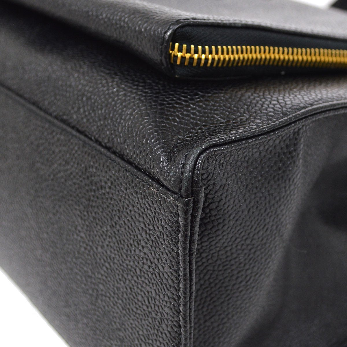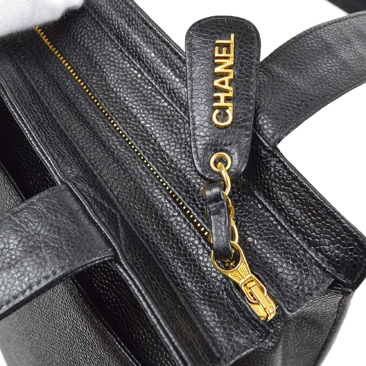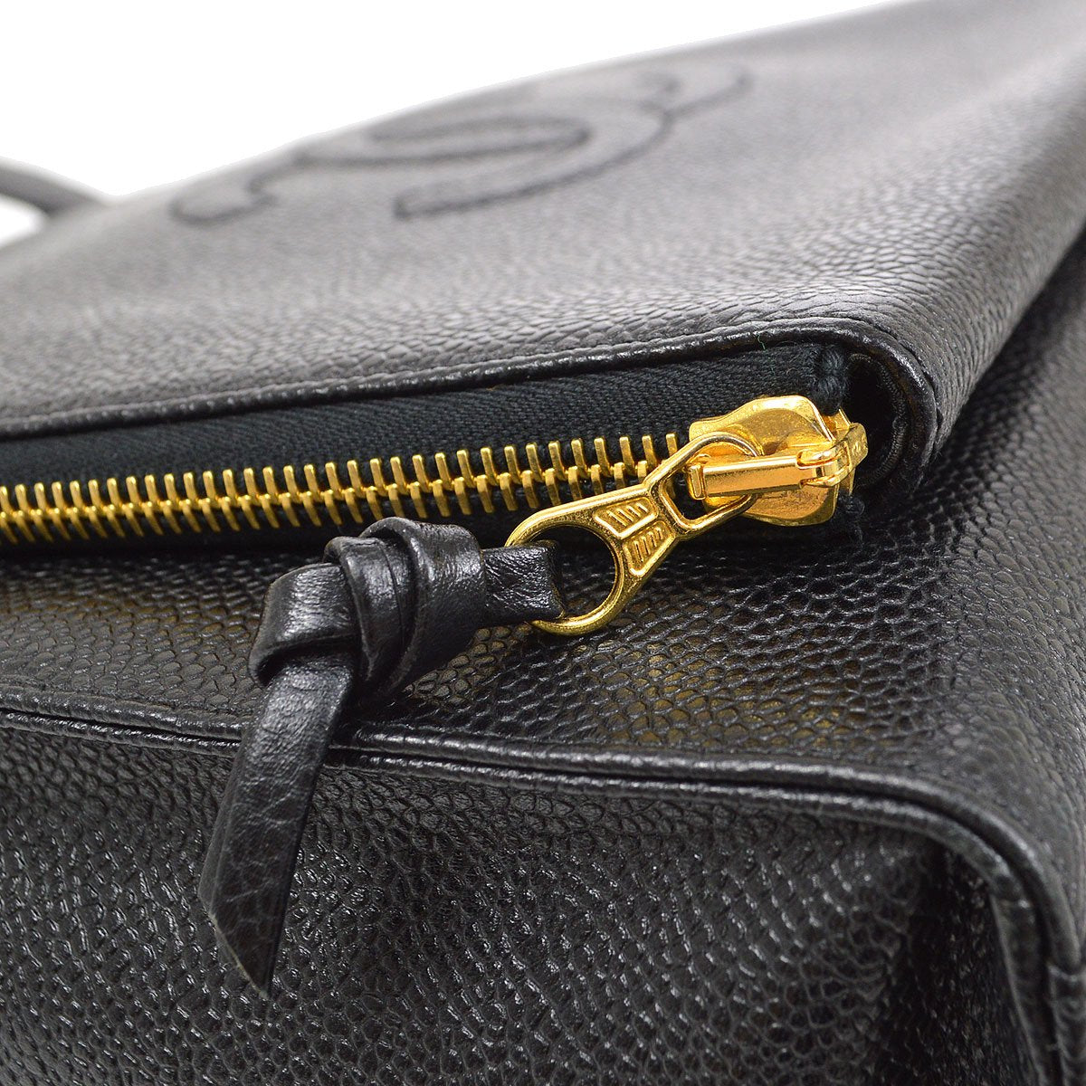 CHANEL 1996-1997 CC Shoulder Tote Bag Black Caviar Skin 83285