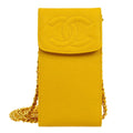 CHANEL Chain Shoulder Bag Phone Case Yellow Caviar Skin