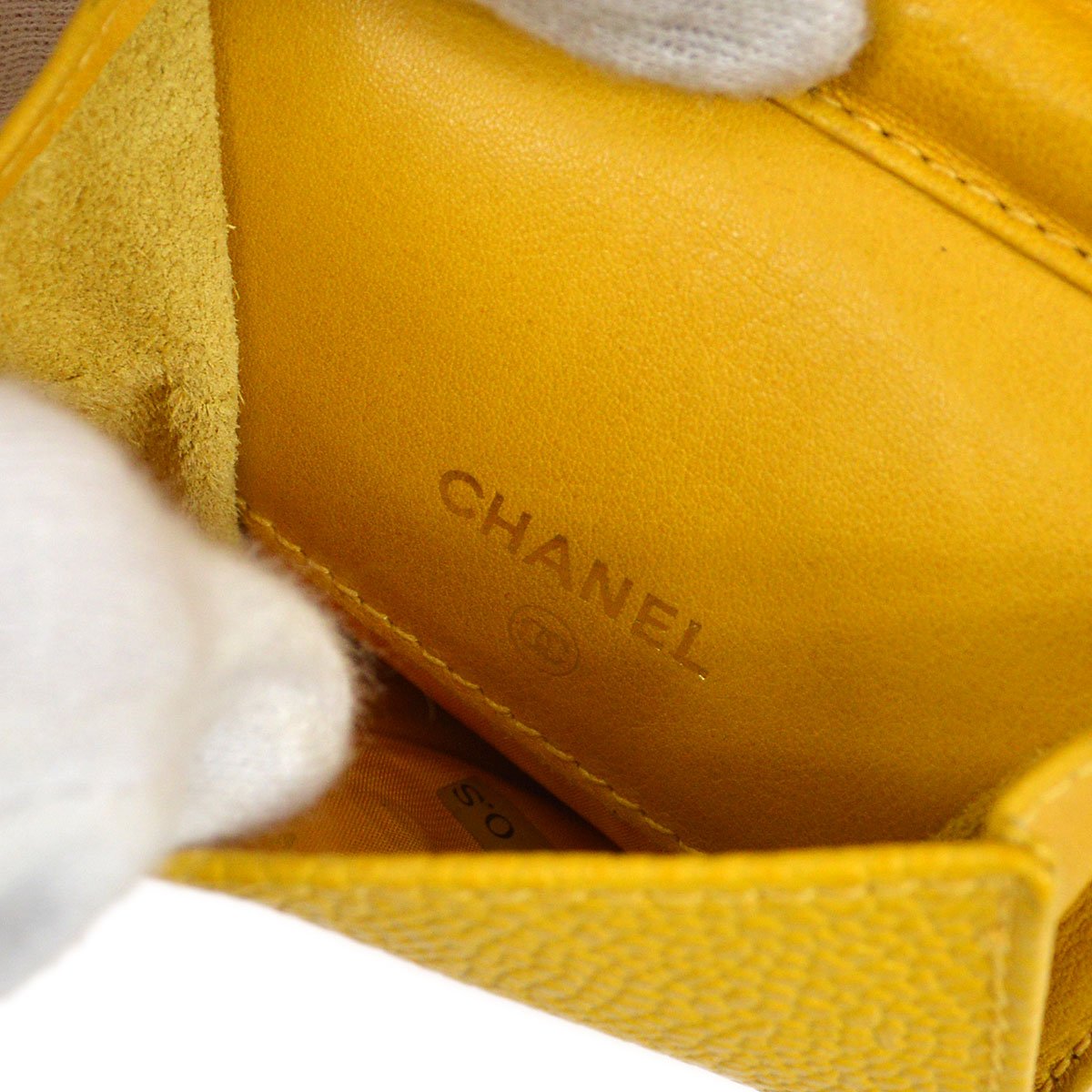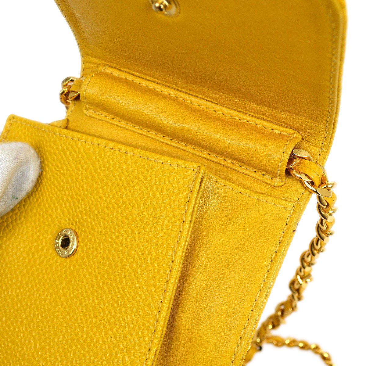 CHANEL 1996-1997 Chain Shoulder Bag Phone Case Yellow Caviar Skin NR14031h