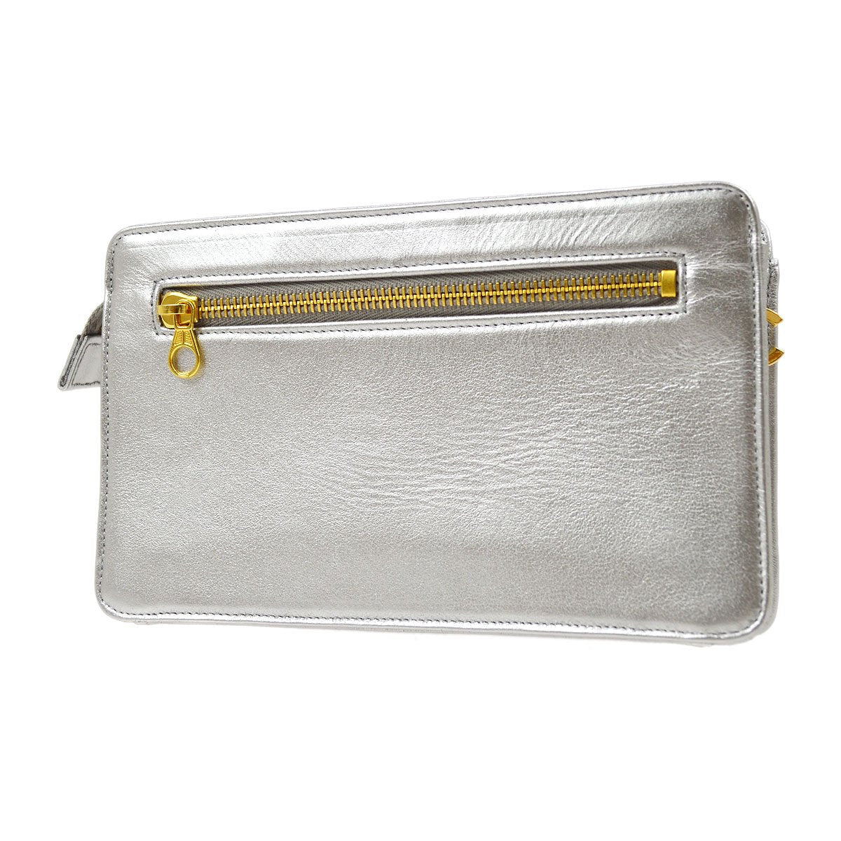 CHANEL 1996-1997 Clutch Hand Bag Silver ao26611