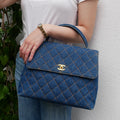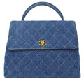 CHANEL Kelly Quilted Hand Bag Denim Indigo