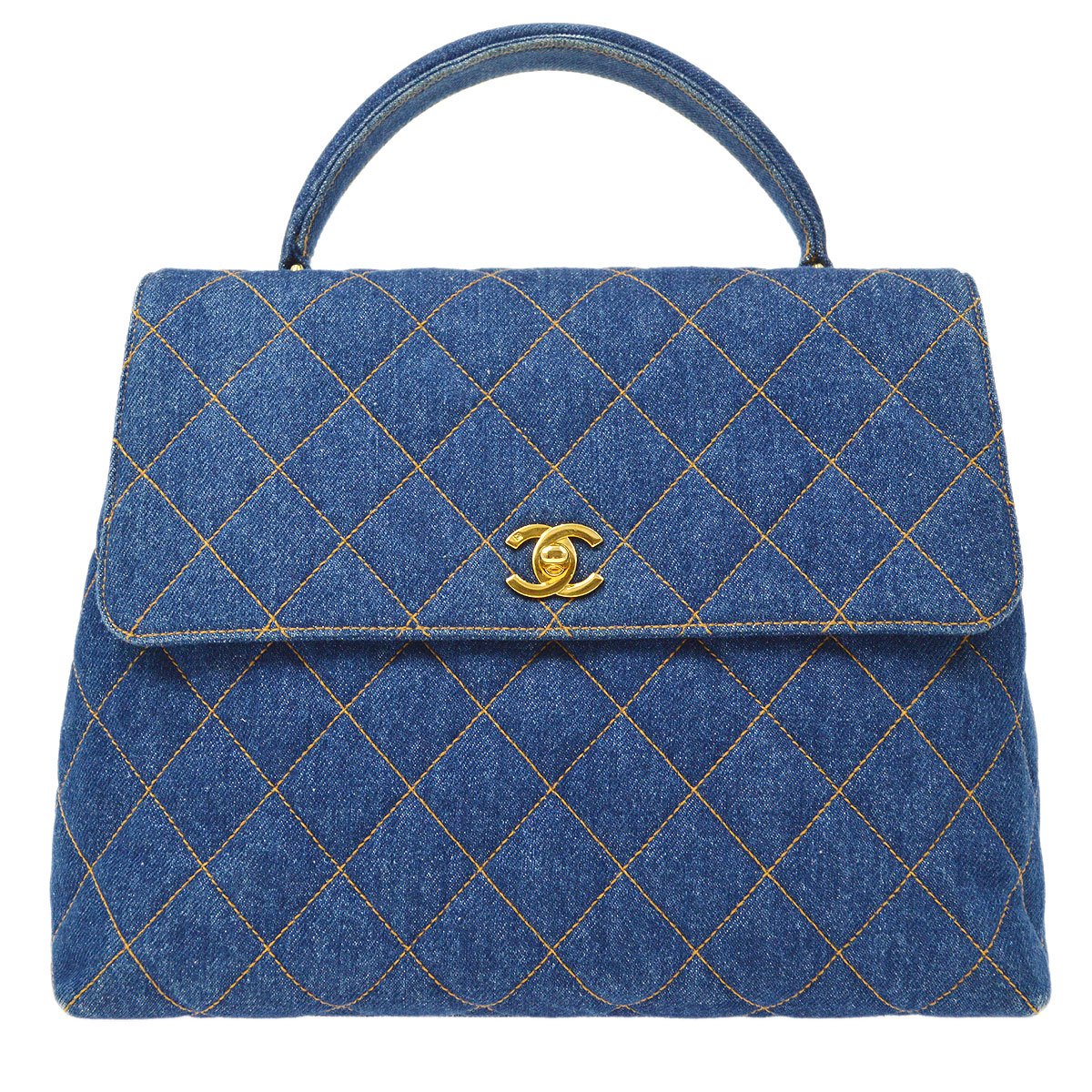 CHANEL 1996-1997 Denim Quilted Kelly 30 90049