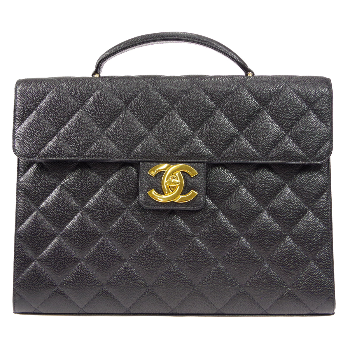 CHANEL? 1996-1997 Quilted Briefcase Black Caviar 58231
