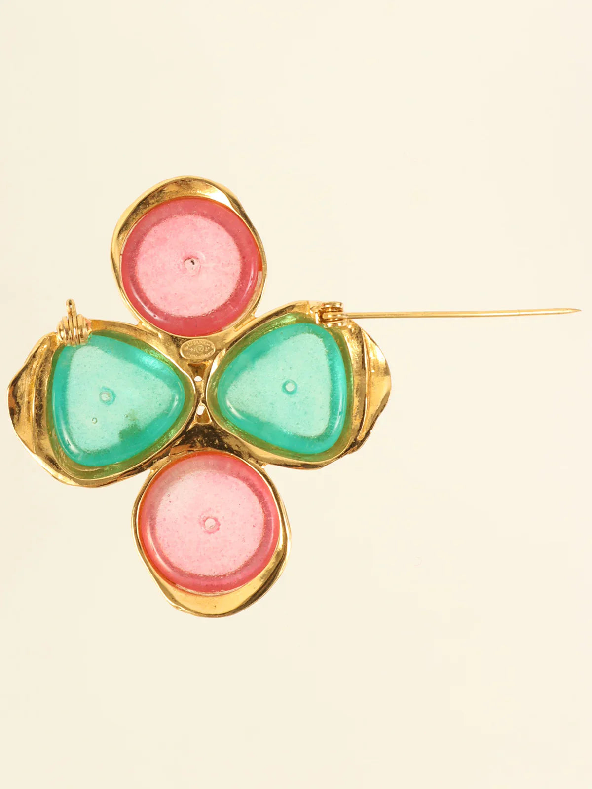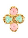 CHANEL 1996 Made Cross Motif Gripoix Cc Mark Brooch Green/Pink