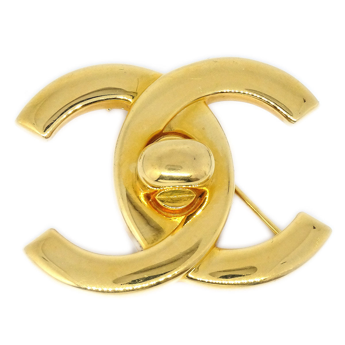 CHANEL 1996 Turnlock CC Brooch Pin Gold Medium 86027