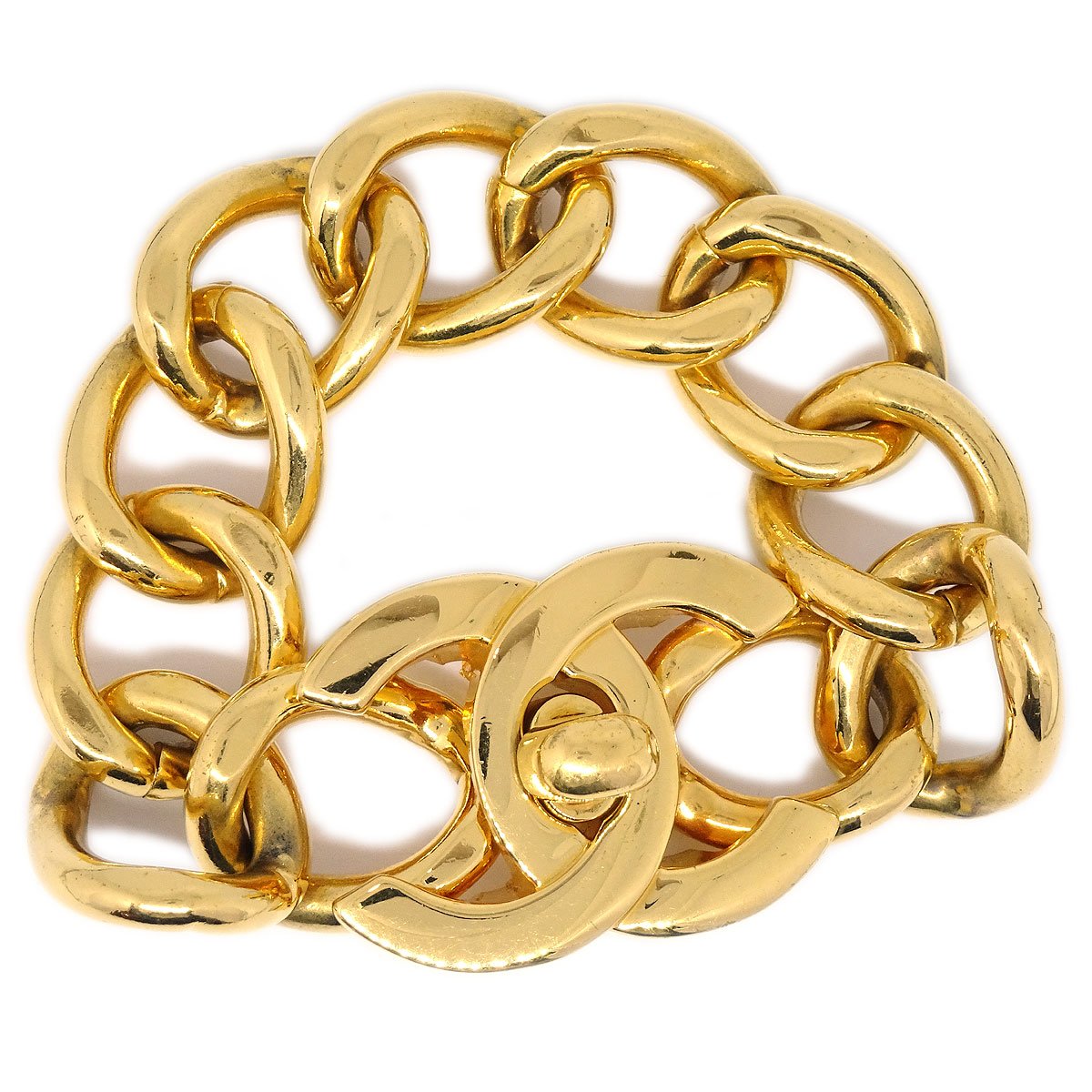 CHANEL 1996 Turnlock Gold Chain Bracelet ao31975