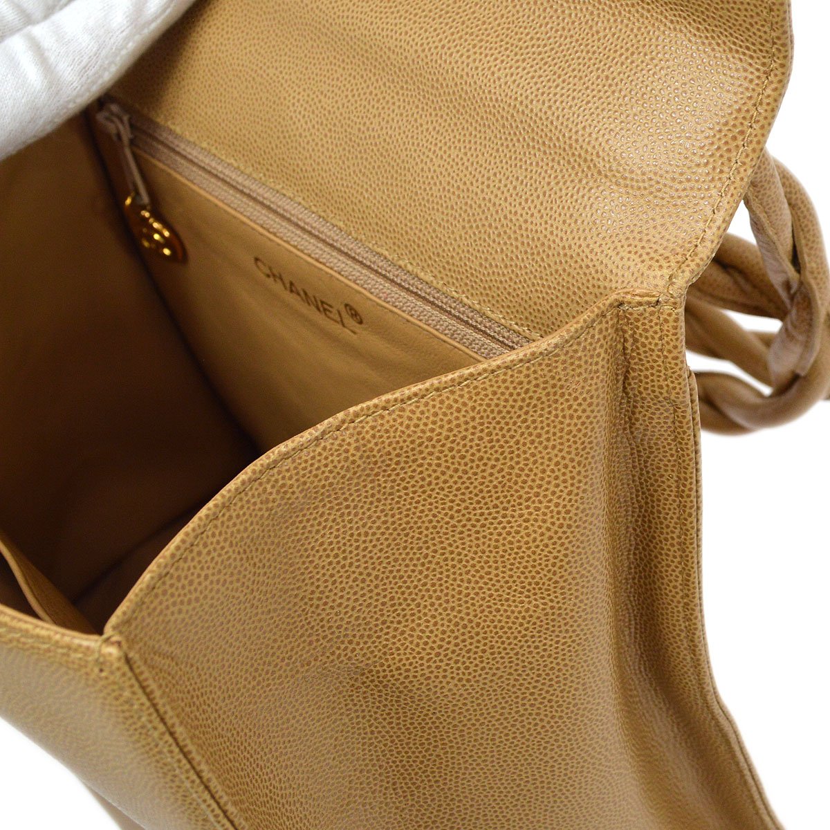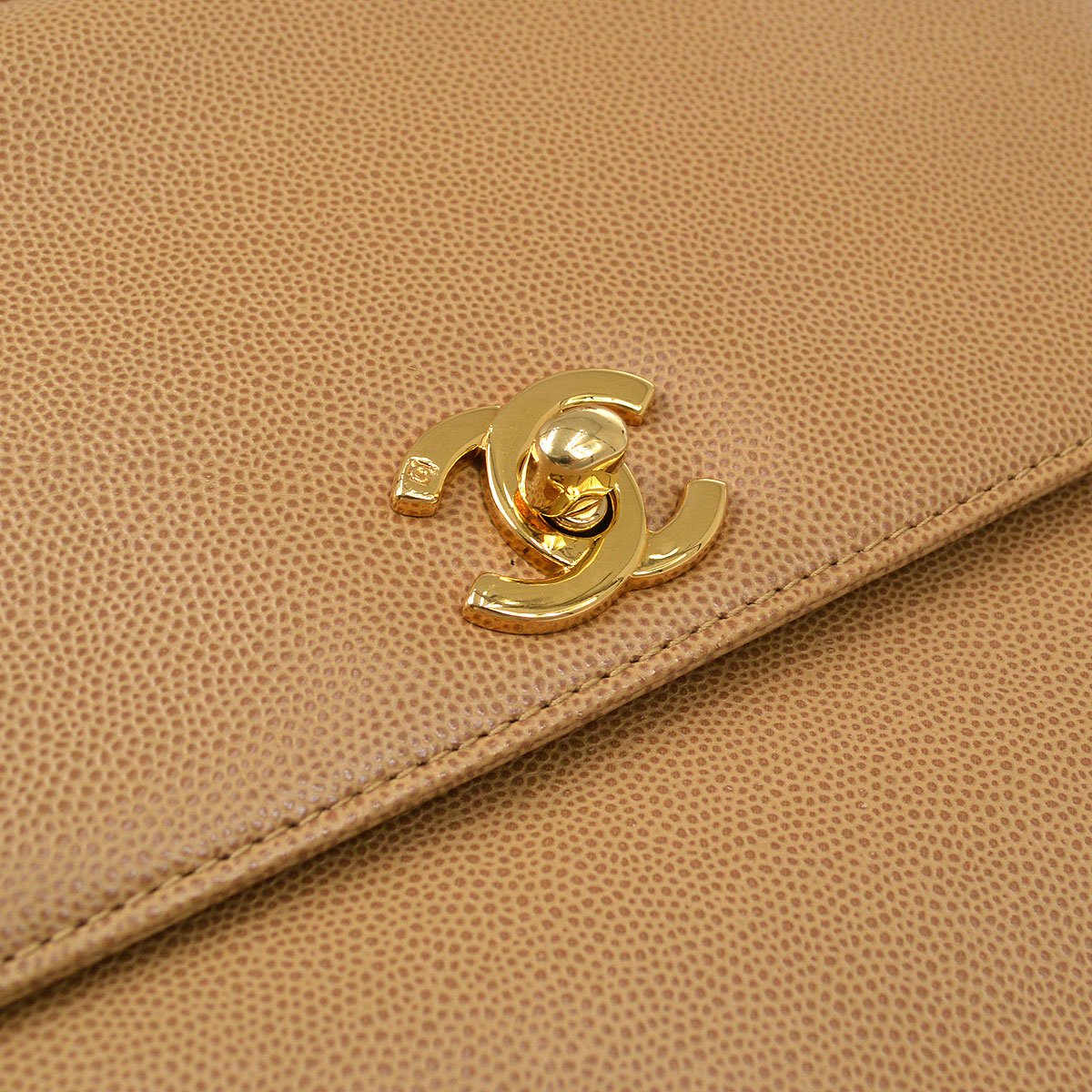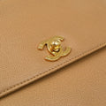 CHANEL 1997-1999 Trapezoid Flap Shoulder Bag Beige Caviar 37480