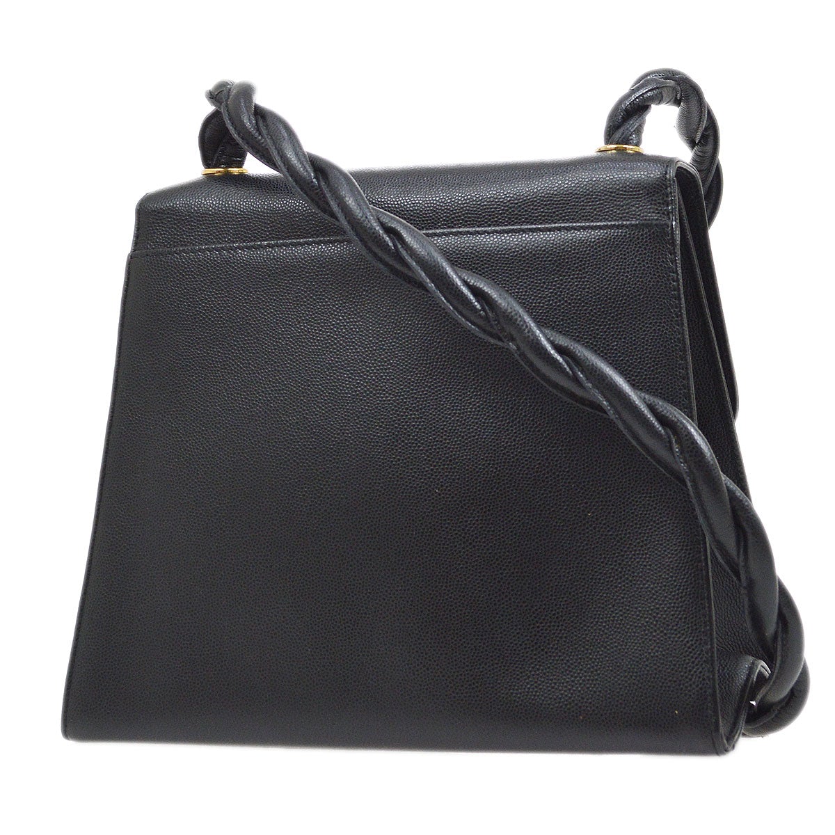 CHANEL 1997-1999 Braided Shoulder Bag Black Caviar Skin 12450