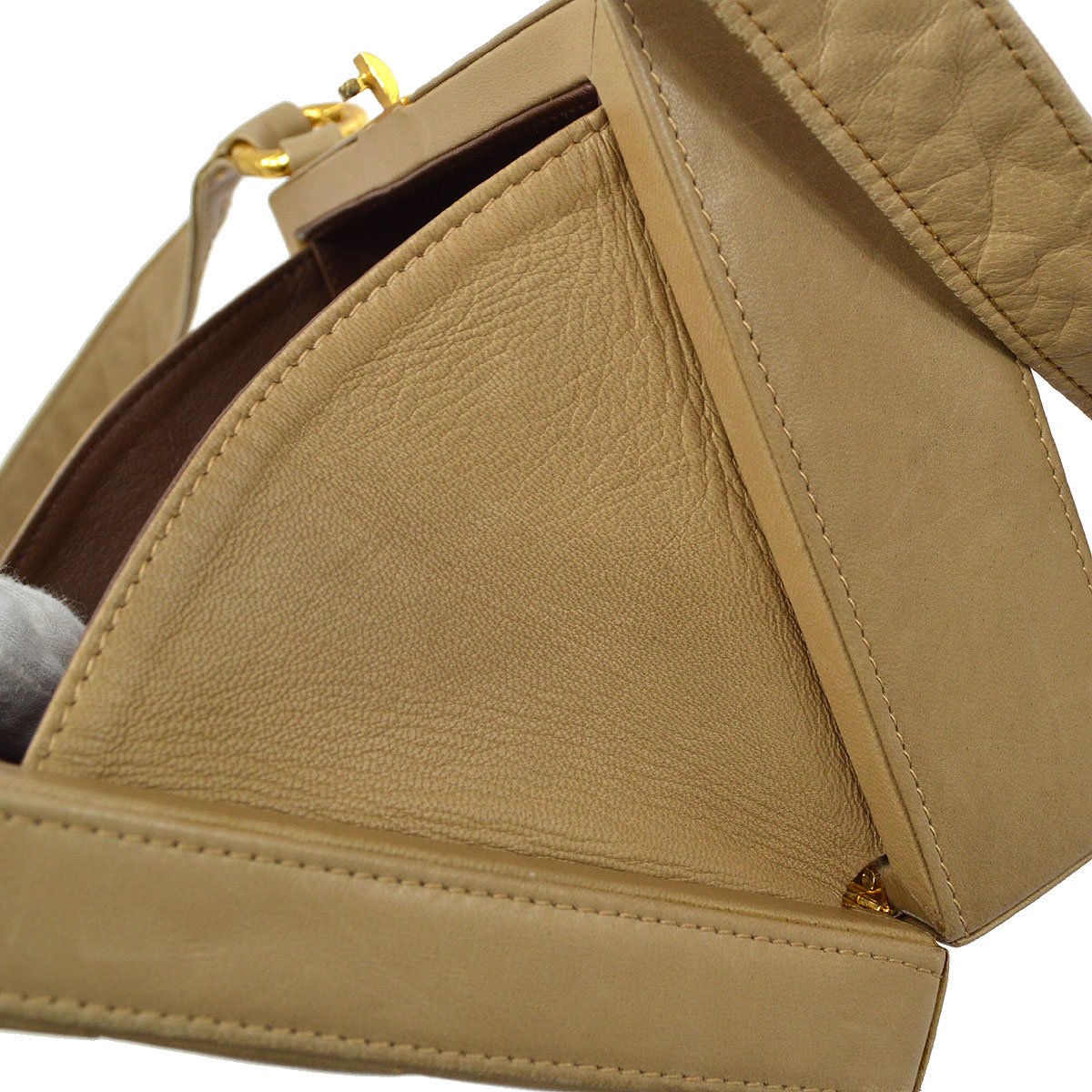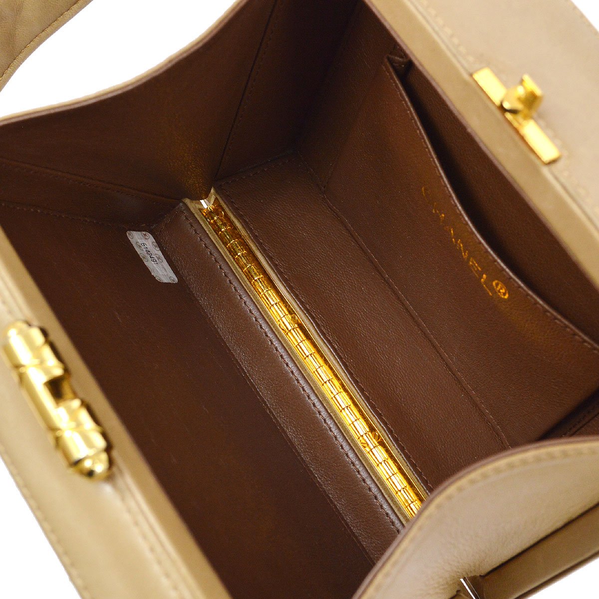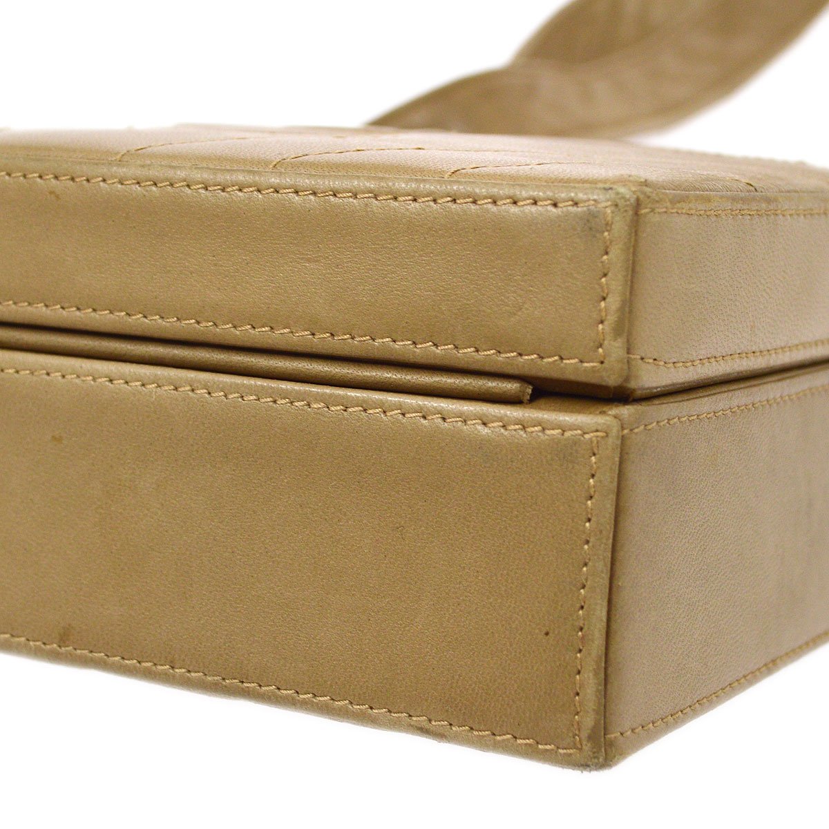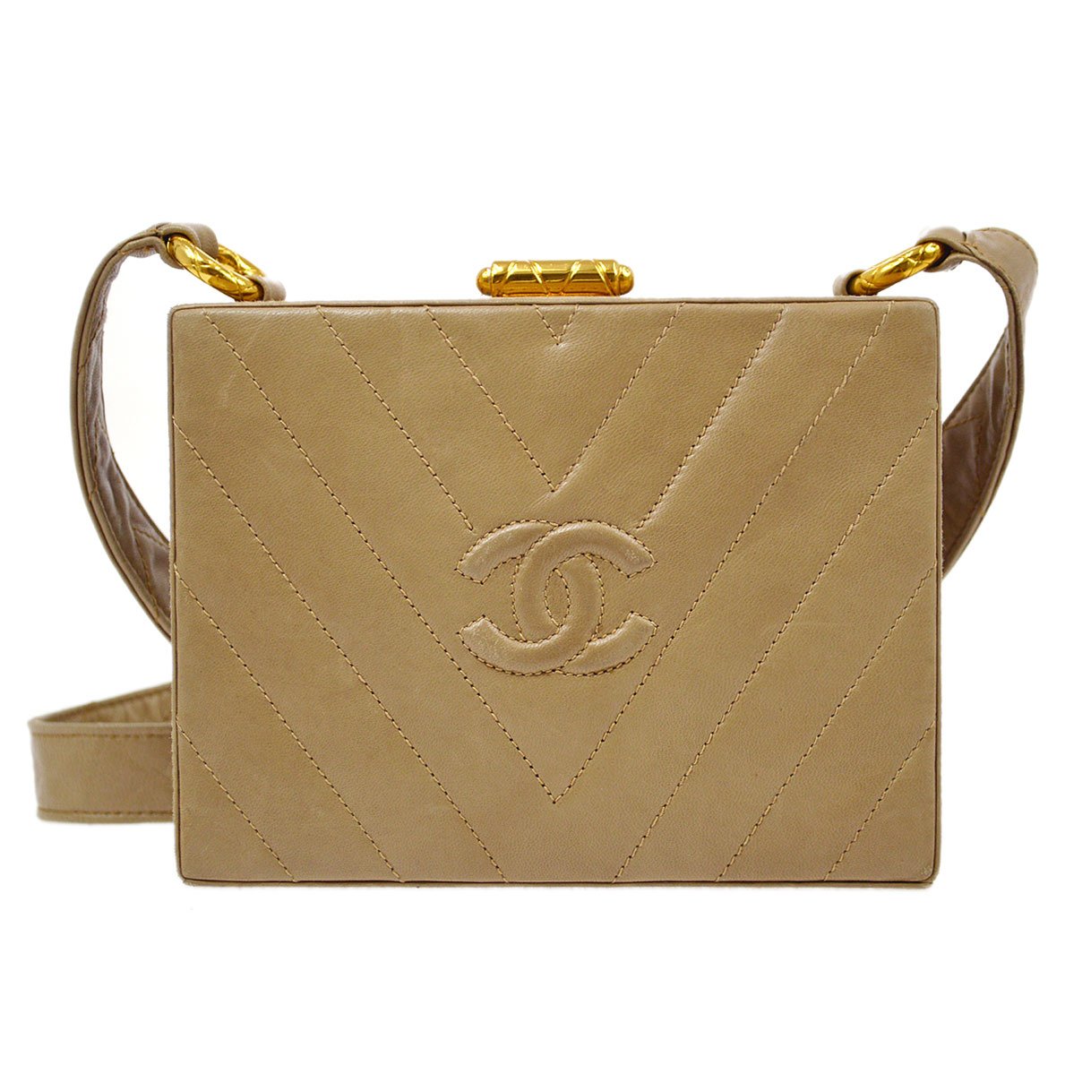 CHANEL 1997-1999 Chevron Box Bag Beige Lambskin 91386