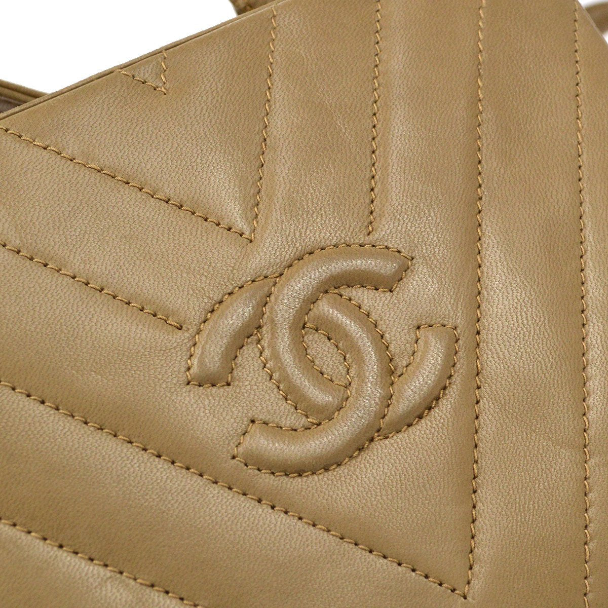 CHANEL V Stitch Shoulder Bag Beige Lambskin