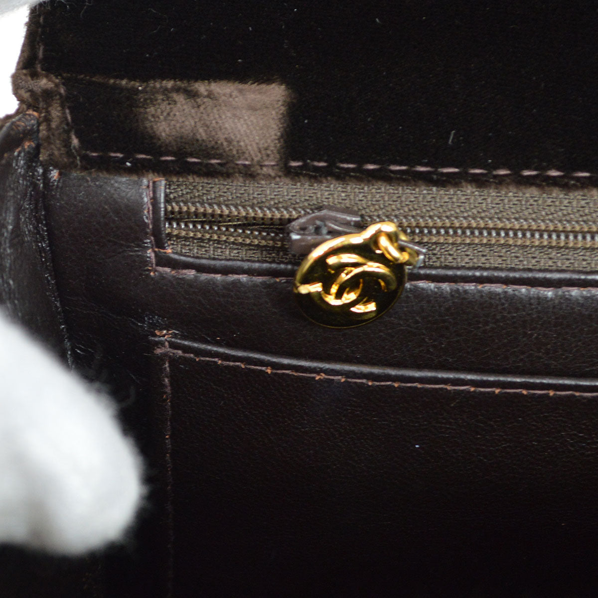 CHANEL 1997-1999 Quilted Flap Shoulder Bag Large Brown Velvet 15767