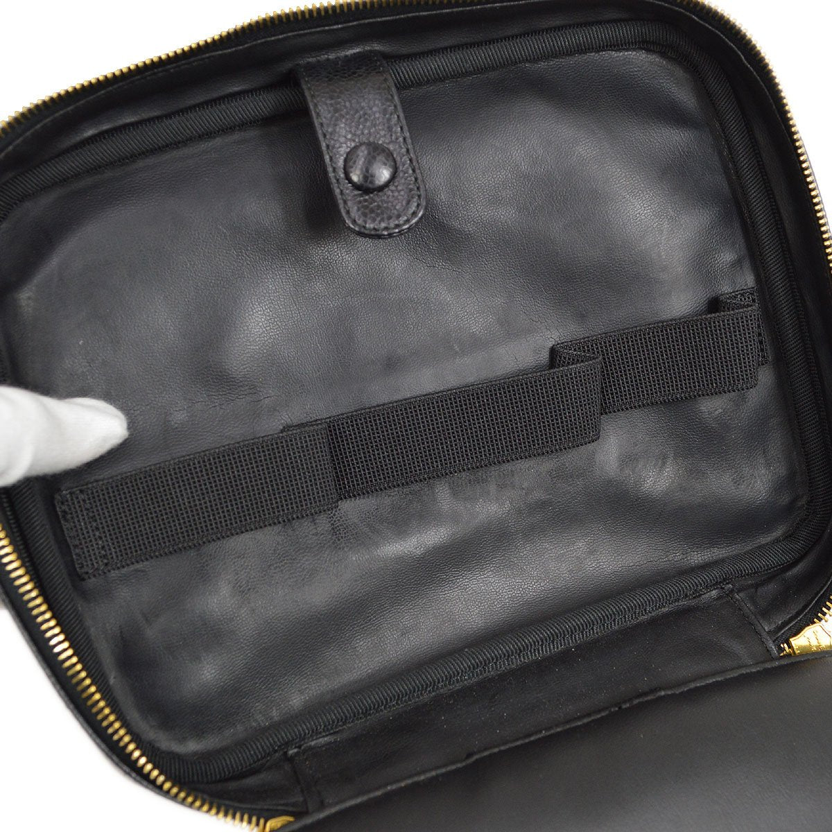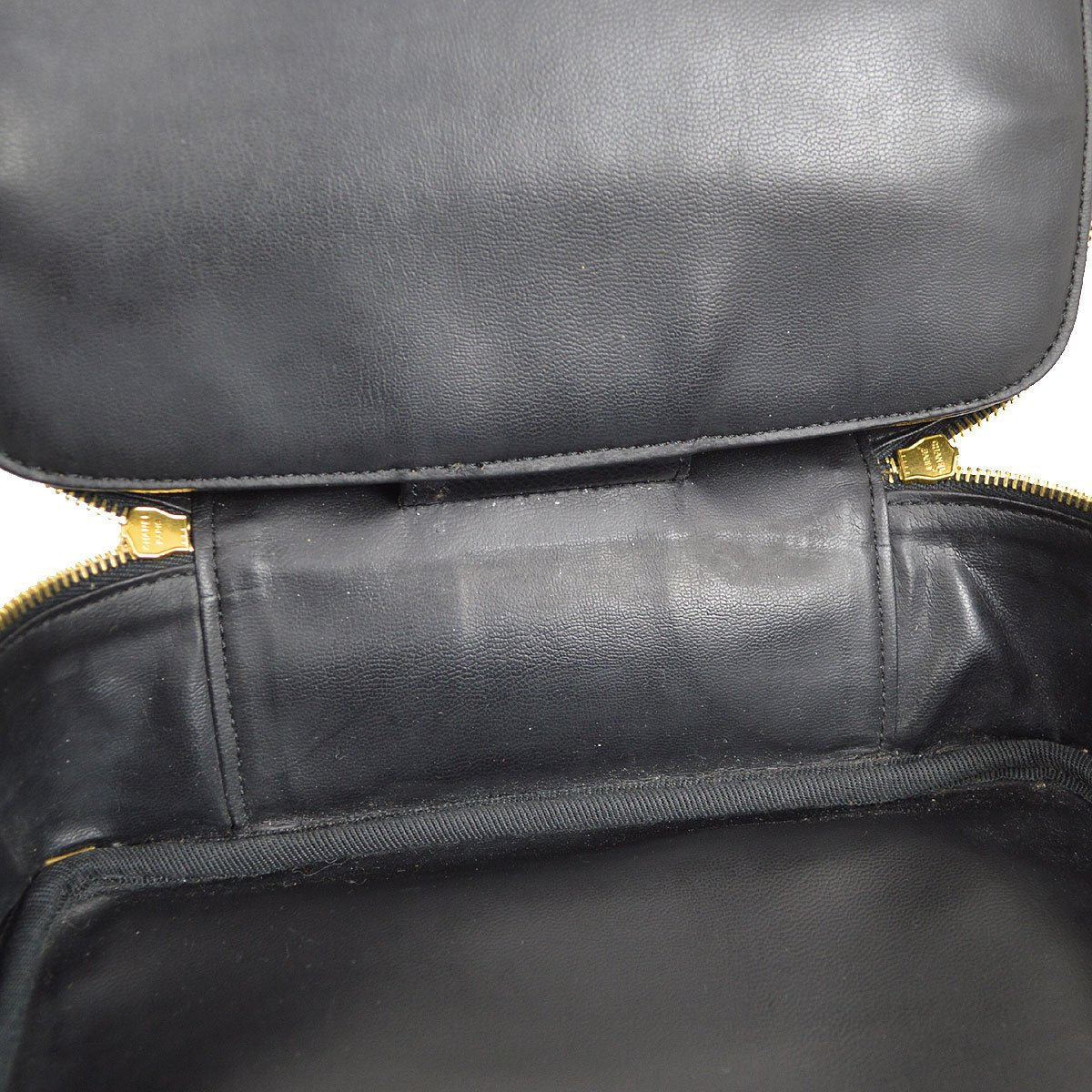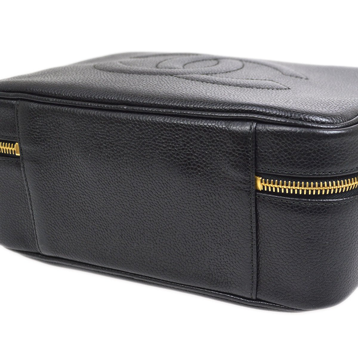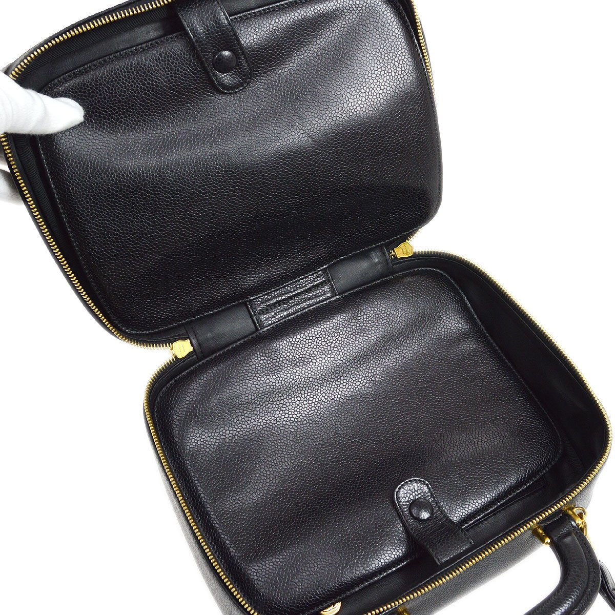CHANEL 1997-1999 2way Cosmetic Vanity Hand Bag Black Caviar Skin