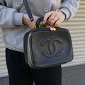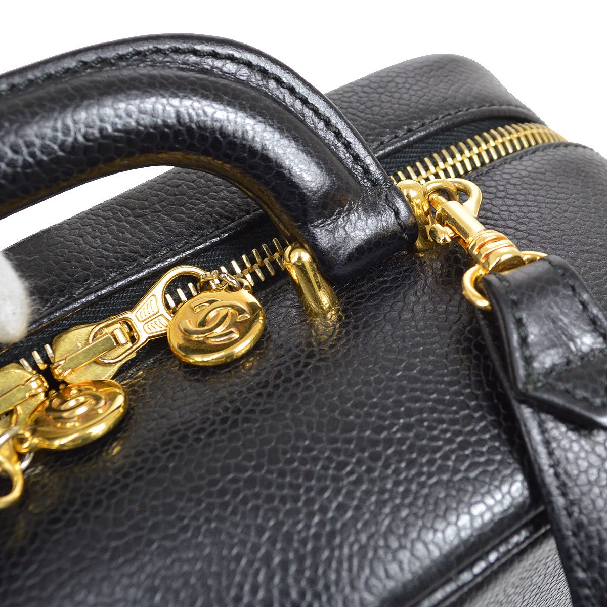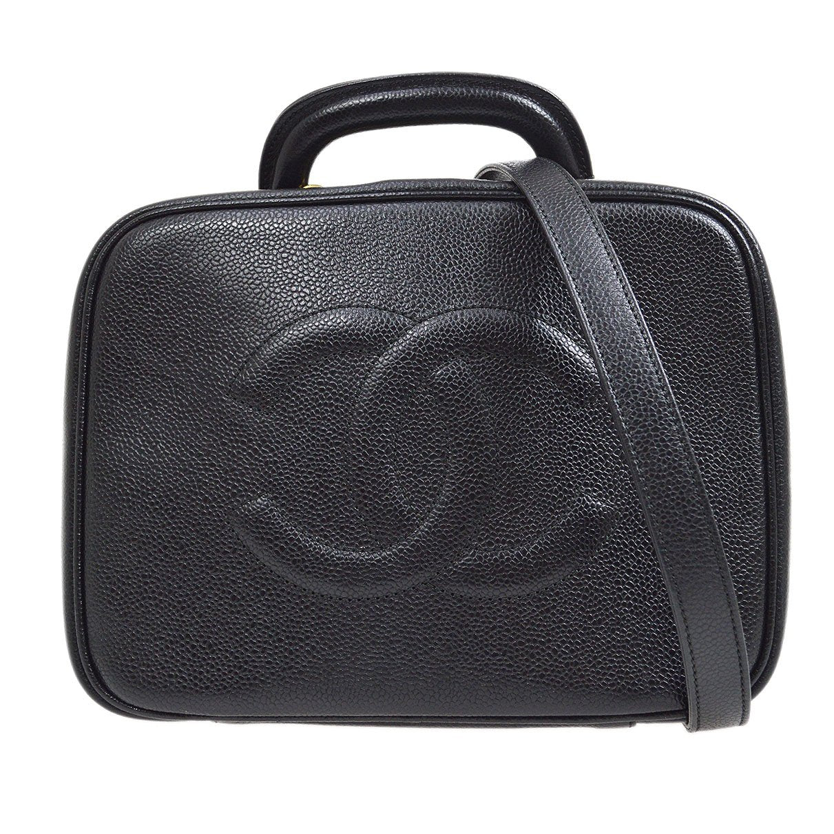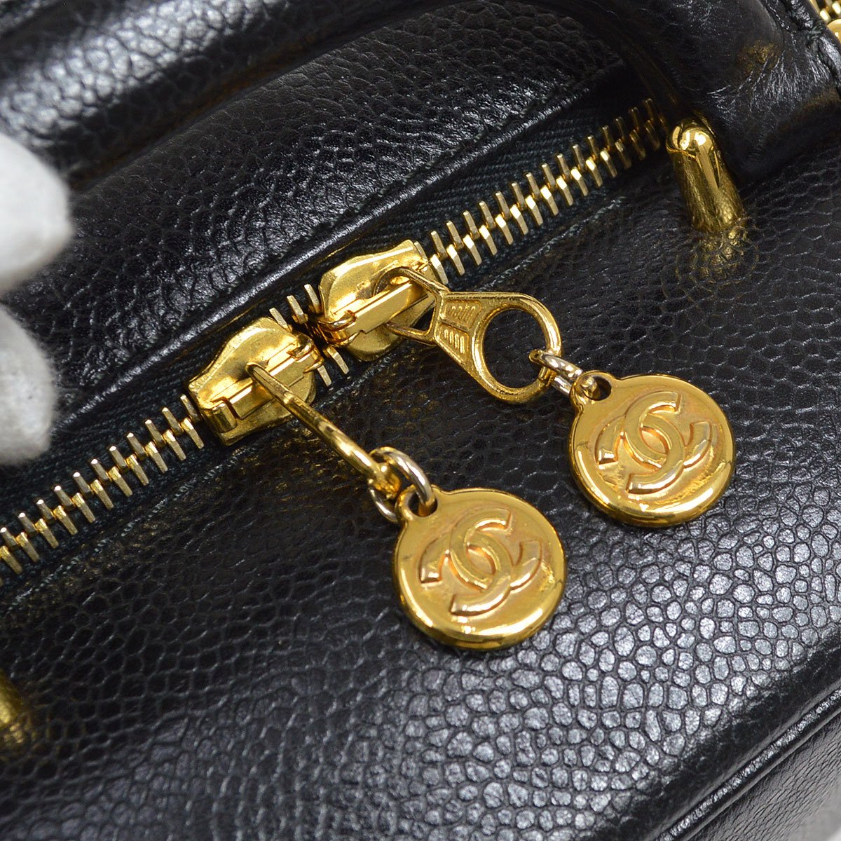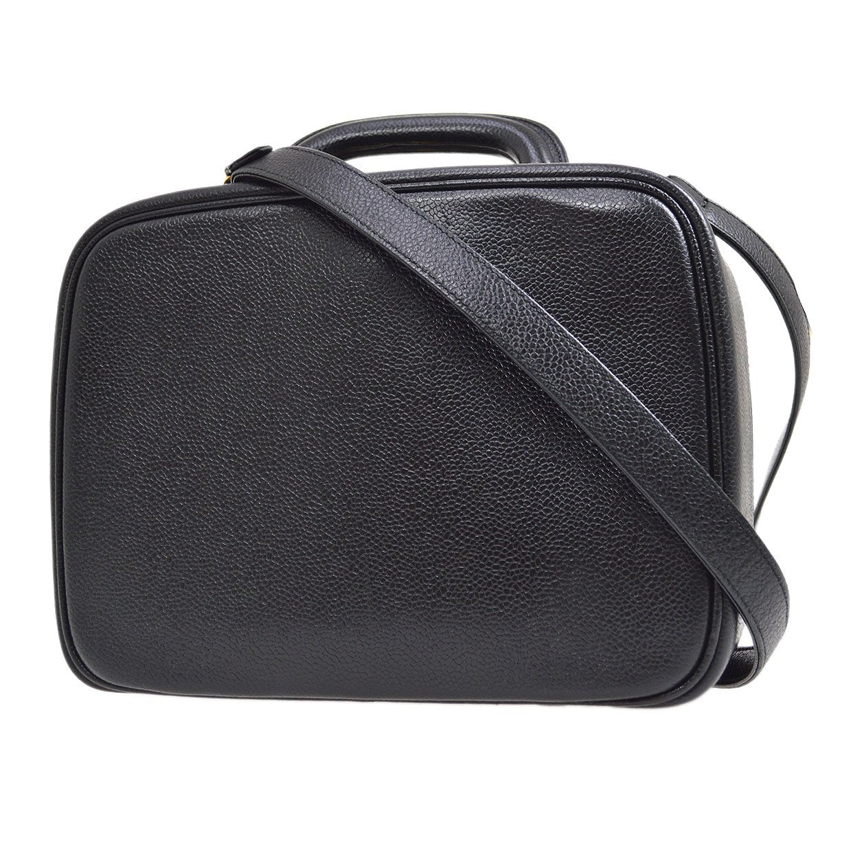 CHANEL 1997-1999 2way Cosmetic Vanity Hand Bag Black Caviar Skin