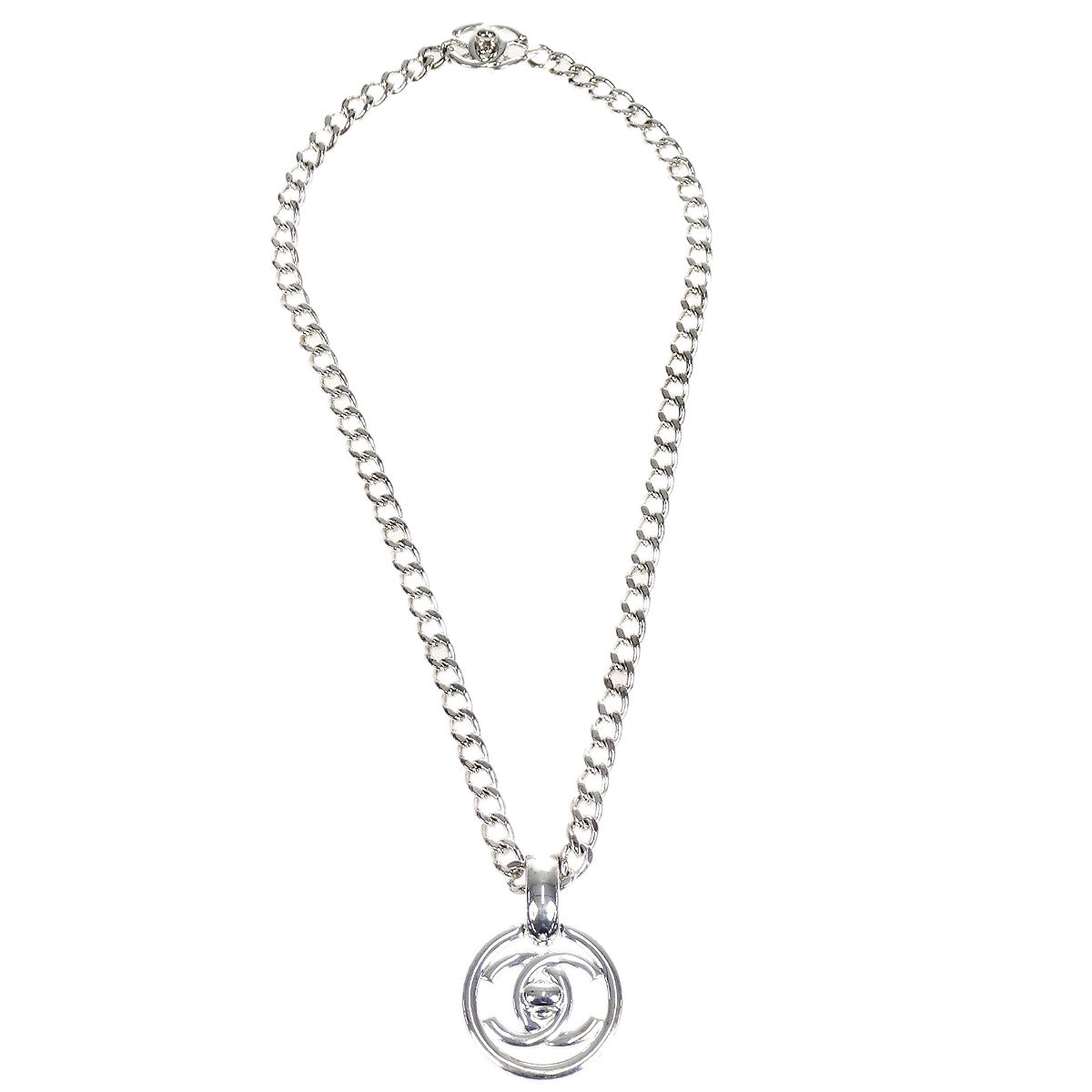 CHANEL 1997 CC Turnlock Silver Chain Pendant Necklace 97P 17255