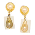 CHANEL 1997 Faux Teardrop Pearl Dangle Earrings Clip-On Gold 61750