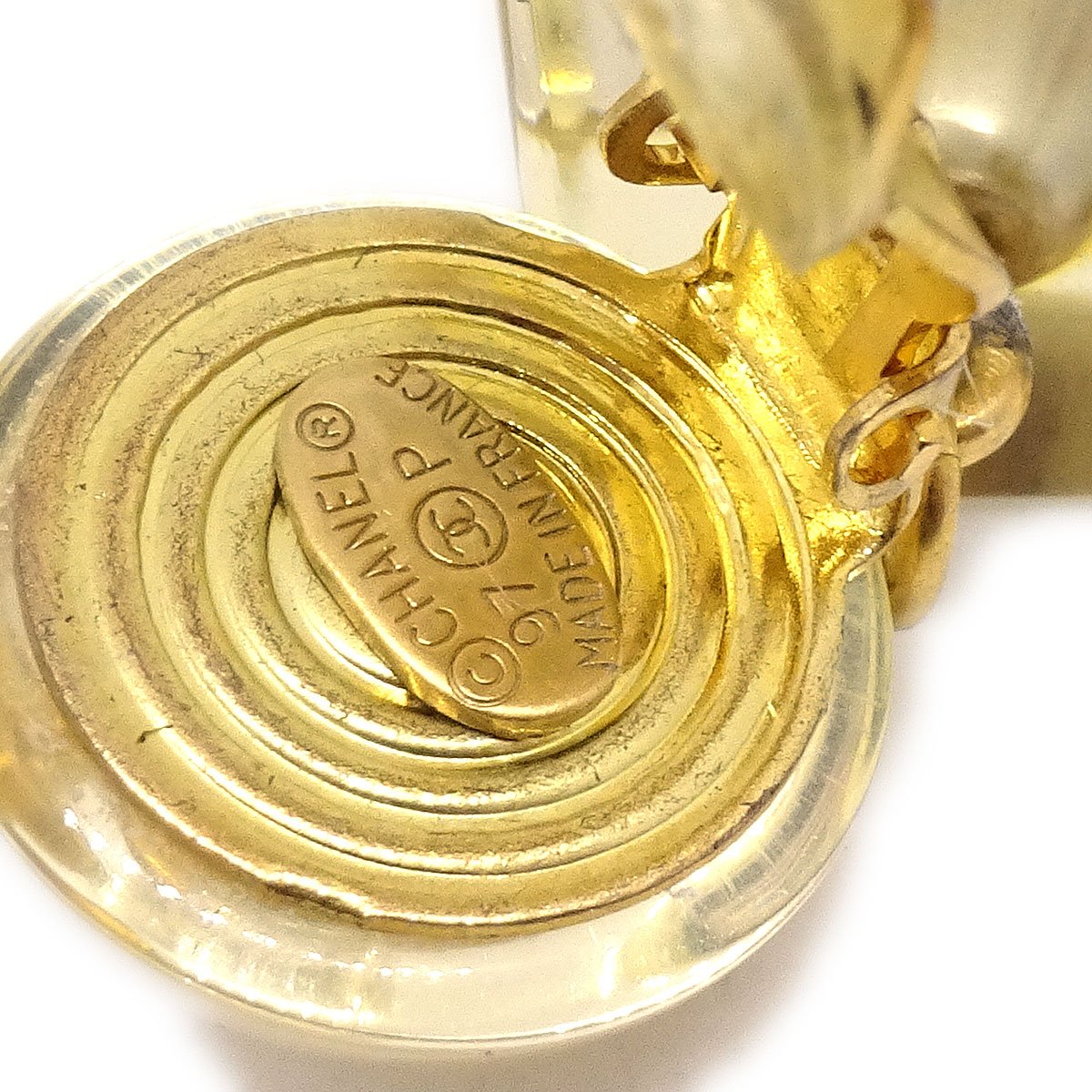 CHANEL Imitation Pearl Shaking Earrings Clip-On Gold 97P