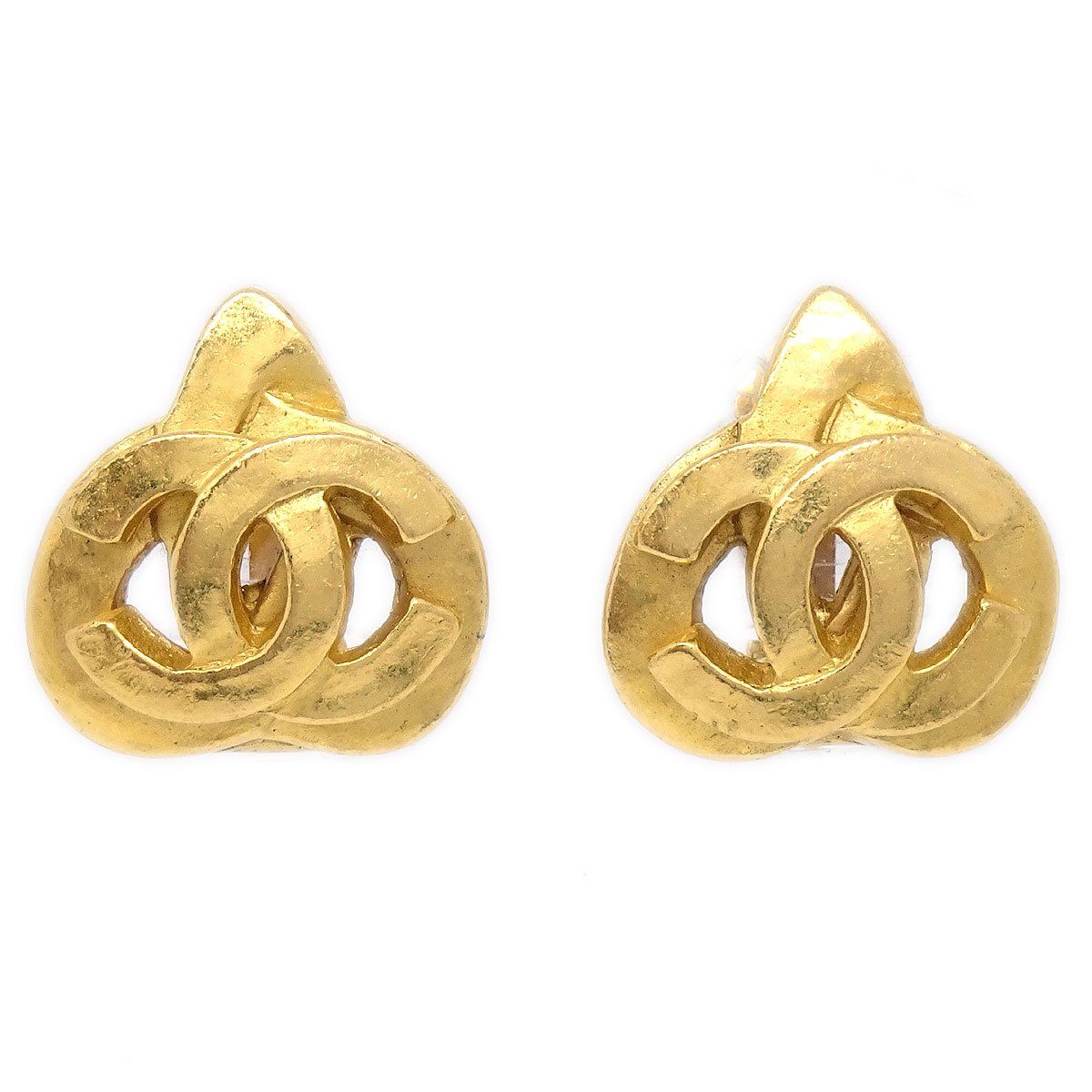 CHANEL Heart Earrings Gold 97P