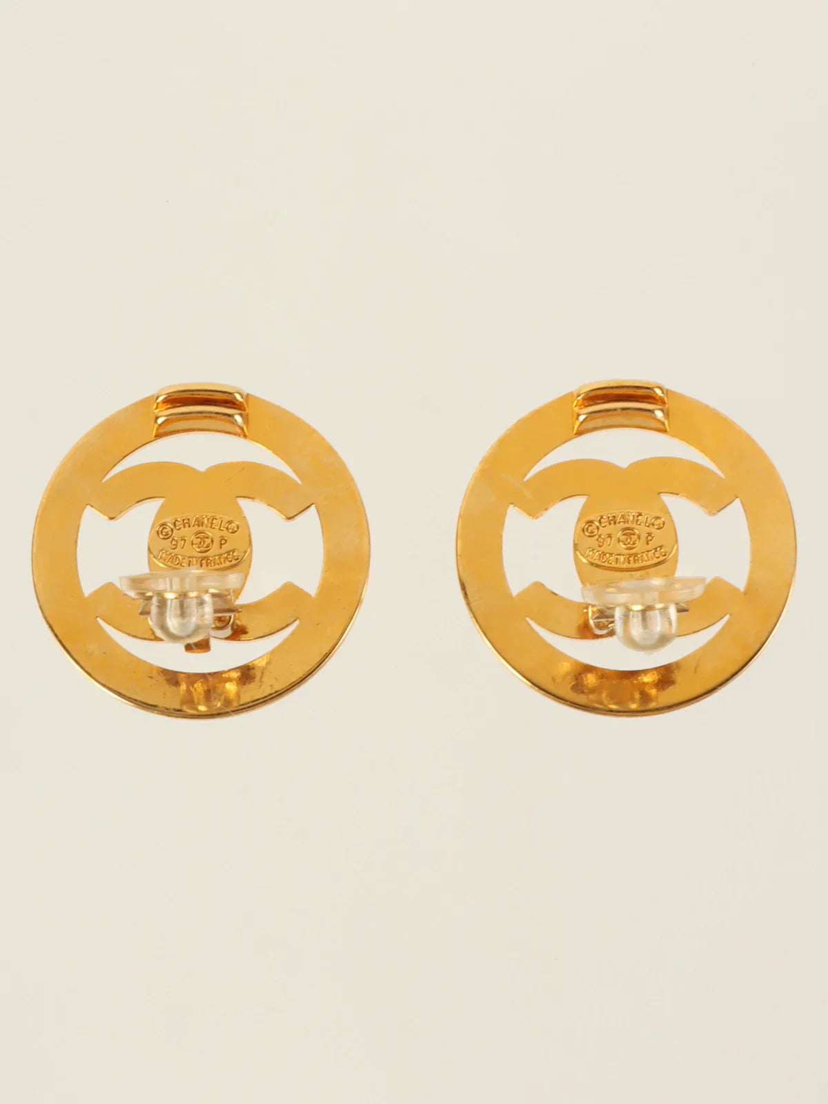 CHANEL 1997 Made Circle Turn-Lock Earrings Gold