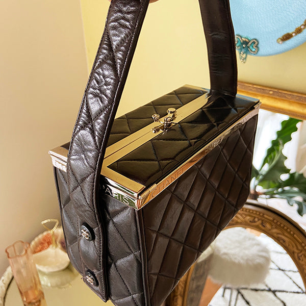 Chanel 1997 Made Logo Plate Box Hand Bag Black
