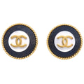 CHANEL Button Earrings Gold Black Clip-On 97P