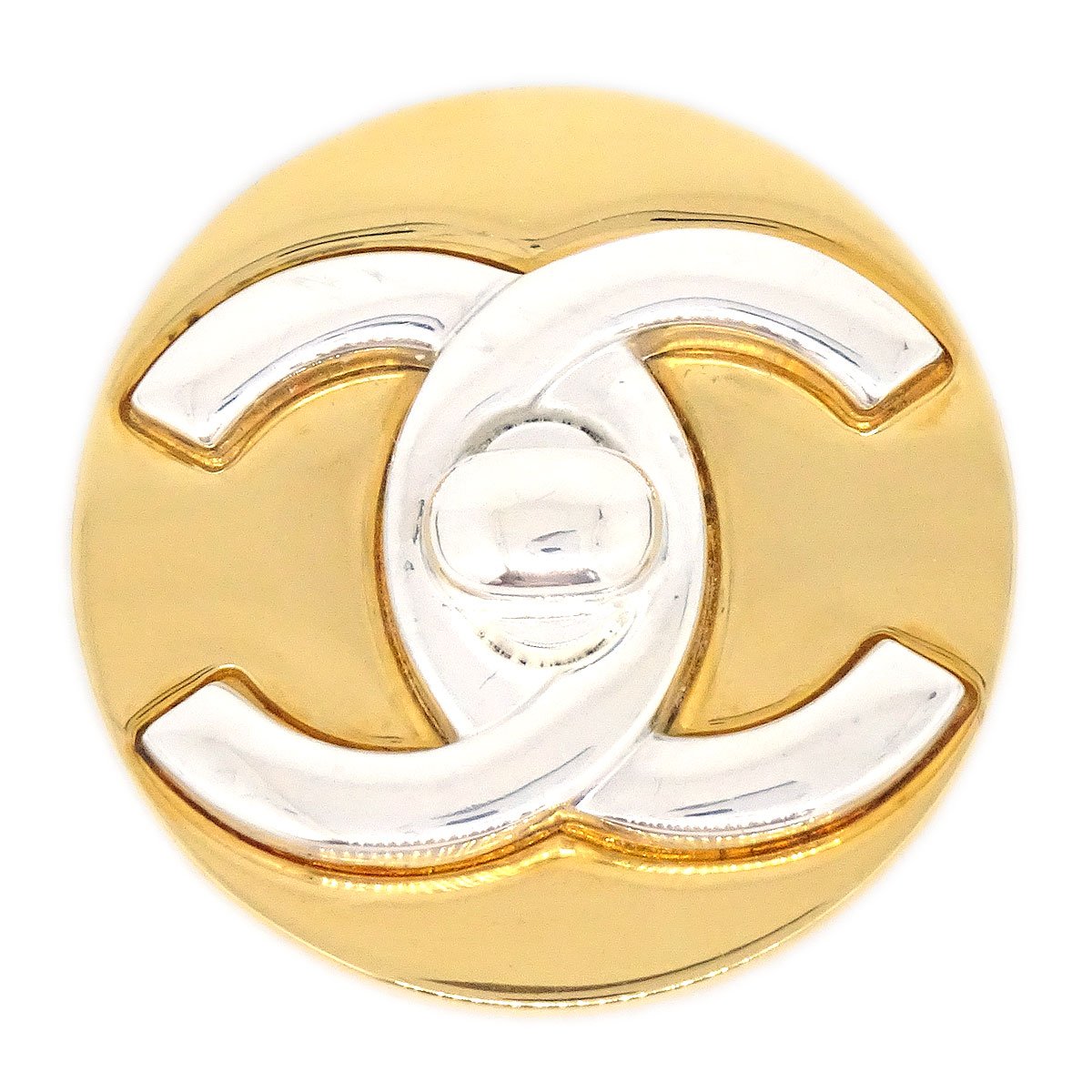 CHANEL 1997 Silver & Gold CC Turnlock Brooch 91494
