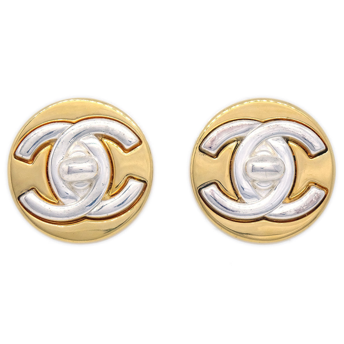 CHANEL 1997 Silver & Gold CC Turnlock Earrings Medium 13236